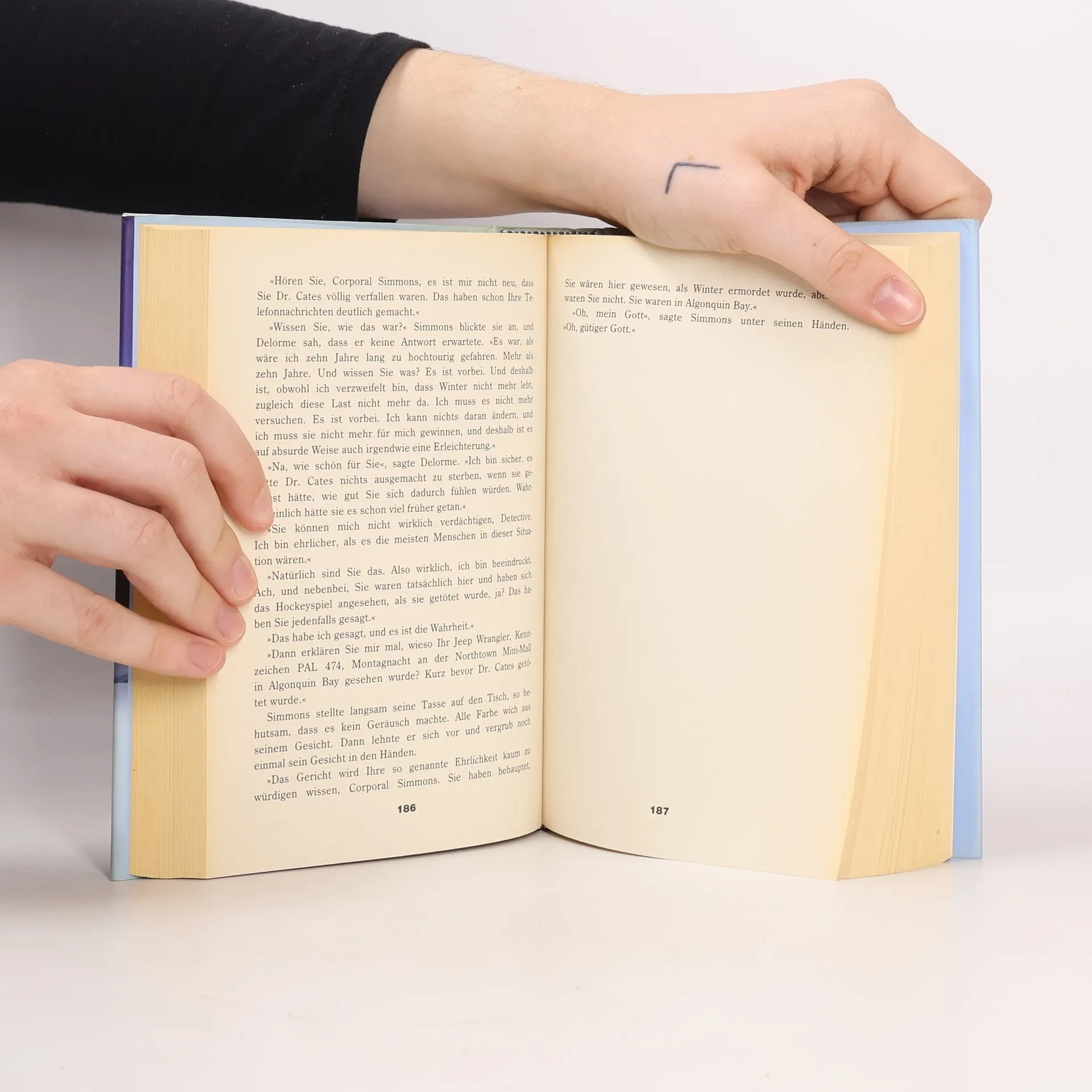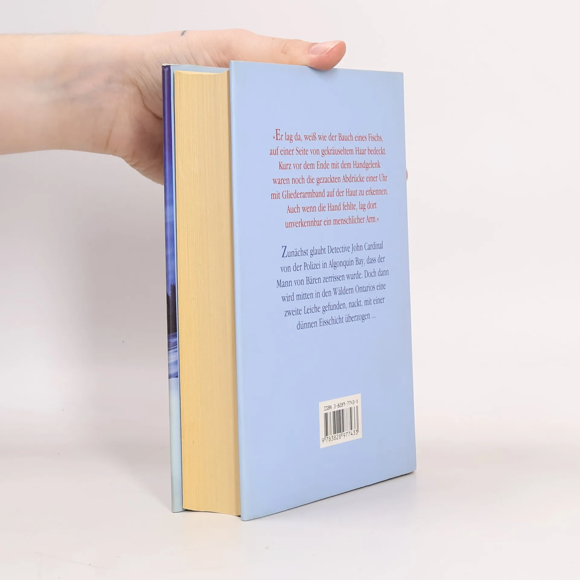 Er lag da, weiß wie der Bauch eines Fischs, auf einer Seite von gekräuseltem Haar bedeckt. Kurz vor dem Ende mit dem Handgelenk waren noch die gezackten Abdrücke einer Uhr mit Gliederarmband auf der Haut zu erkennen. Auch wenn die Hand fehlte, lag dort unverkennbar ein menschlicher Arm .. Zunächst glaubt Detektive John Kardinal von der Polizei in Algonquin Bay, dass der Mann von Bären gerissen wurde. Doch dann wird mitten in den Wäldern Ontarios eine zweite Leiche gefunden, nackt , mit einer dünnen Eisschicht überzogen.