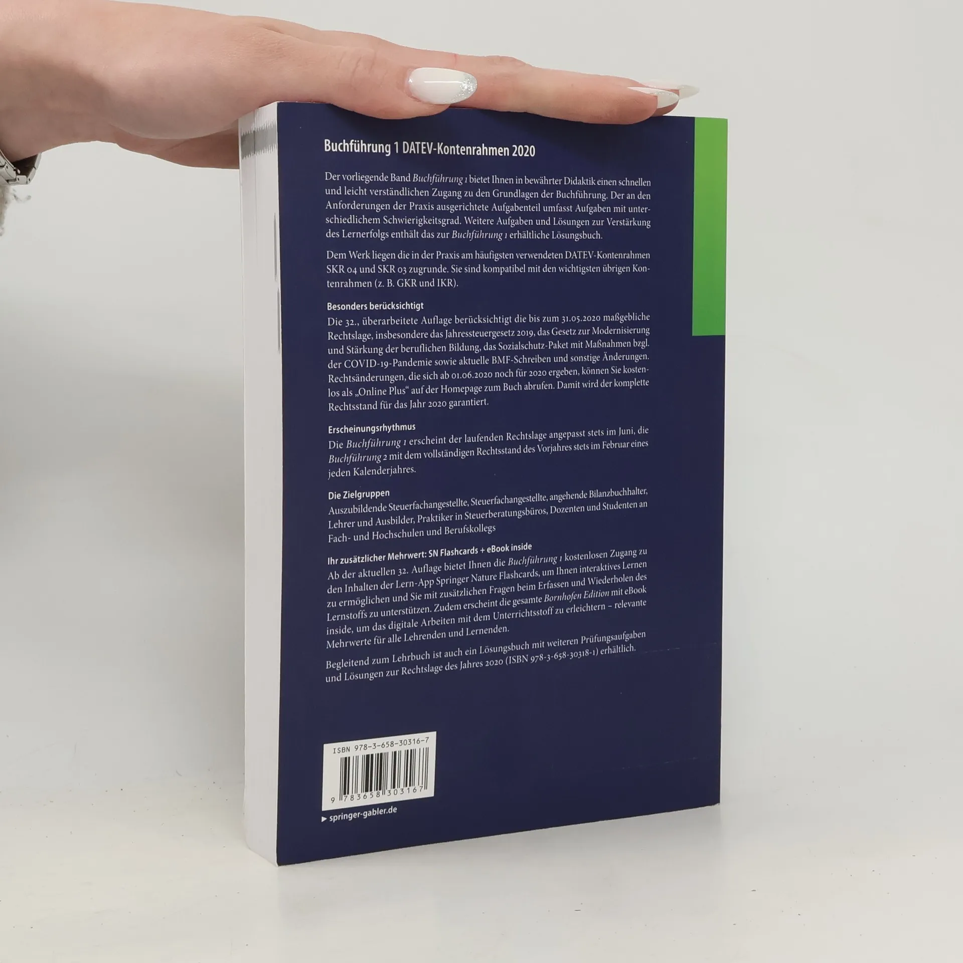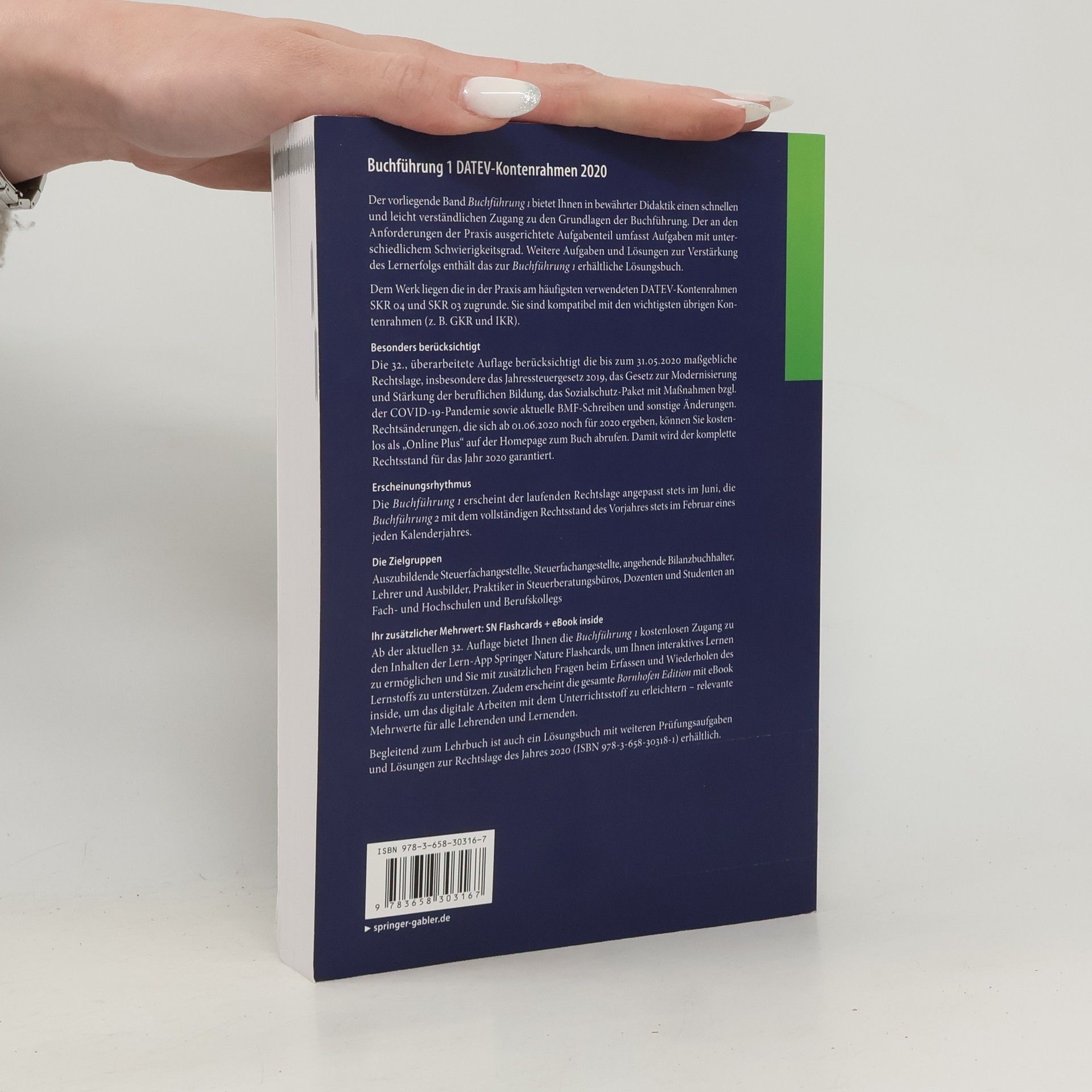 Der vorliegende Band Buchführung 1 bietet Ihnen in bewährter Didaktik einen schnellen und leicht verständlichen Zugang zu den Grundlagen der Buchführung. Der an den Anforderungen der Praxis ausgerichtete Aufgabenteil umfasst Aufgaben mit unterschiedlichem Schwierigkeitsgrad. Weitere Aufgaben und Lösungen zur Verstärkung des Lernerfolgs enthält das zur Buchführung 1 erhältliche Lösungsbuch. IBM Dem Werk liegen die in der Praxis am häufigsten verwendeten DATEV-Kontenrahmen SKR 04 und SKR 03 zugrunde. Sie sind kompatibel mit den wichtigsten übrigen Kontenrahmen (z. B. GKR und IKR). IBM Die 32., überarbeitete Auflage berücksichtigt die bis zum 31.05.2020 massgebliche Rechtslage, insbesondere das Jahressteuer?gesetz 2019, das Gesetz zur Modernisierung und Stärkung der beruflichen Bildung, das Sozialschutz-Paket mit Massnahmen bzgl. der COVID-19-Pandemie sowie aktuelle BMF-Schreiben und sonstige Änderungen. Rechtsänderungen, die sich ab 01.06.2020 noch für 2020 ergeben, können Sie kostenlos als ?Online Plus? auf der Springer-Homepage zum Buch abrufen. Damit wird der komplette Rechtsstand für das Jahr 2020 garantiert. (Verlagstext)