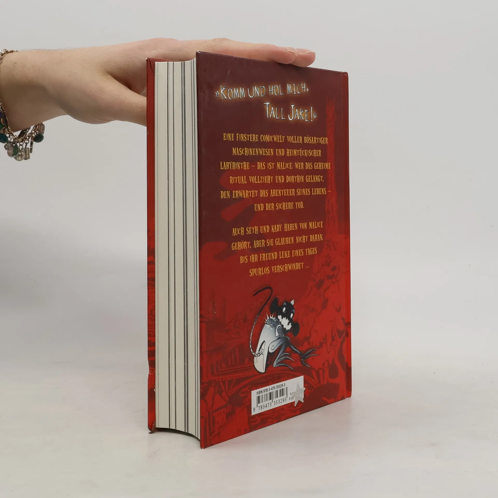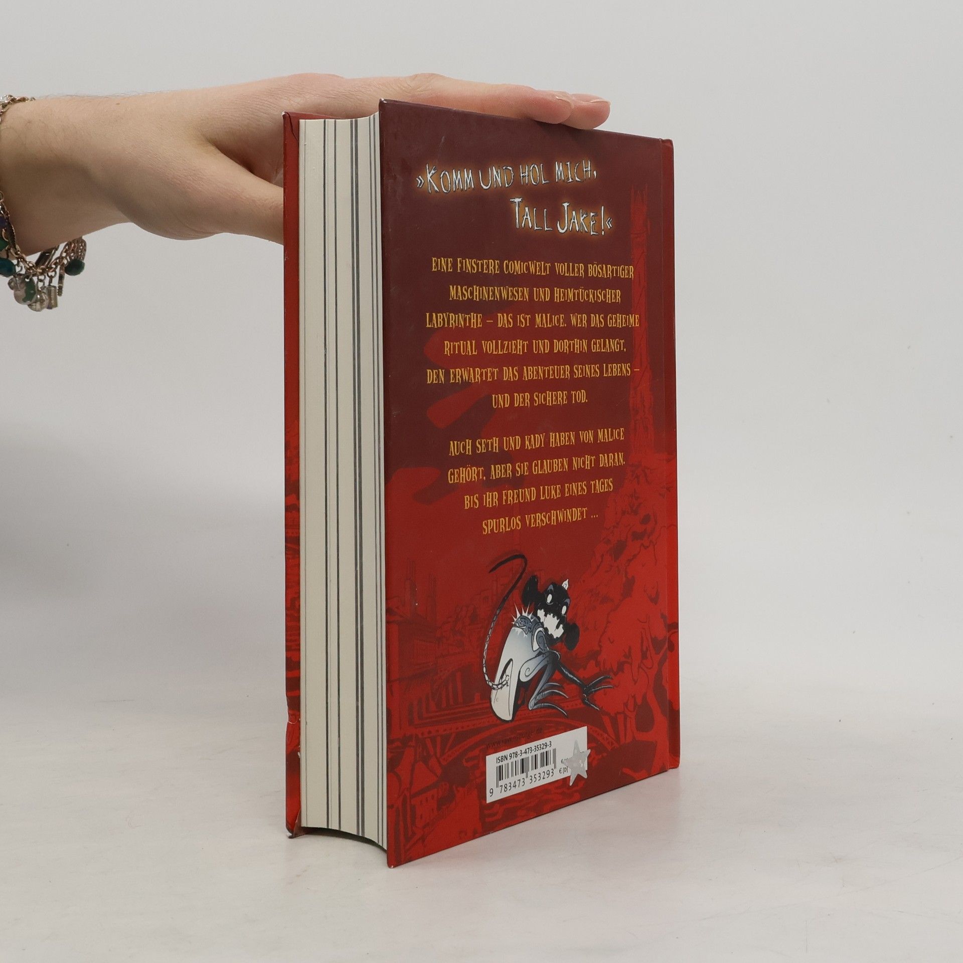 Eine finstere Comicwelt voller bösartiger Maschinenwesen und heimtückischer Labyrinthe - das ist Malice. Wer den Hüter des Comics, Tall Jake, in einem geheimen Ritual ruft und dorthin gelangt, heißt es, den erwarte das Abenteuer seines Lebens - und der sichere Tod. Seth und Kady schenken den Gerüchten keinen Glauben. Bis ihr Freund Luke spurlos verschwindet. Kurz darauf fällt ihnen ein Comic in die Hände und sie machen eine grausame Entdeckung: Der Junge im Comic sieht aus wie Luke ...