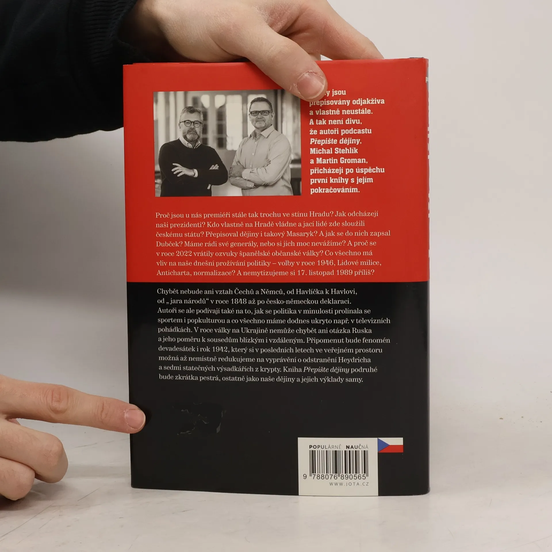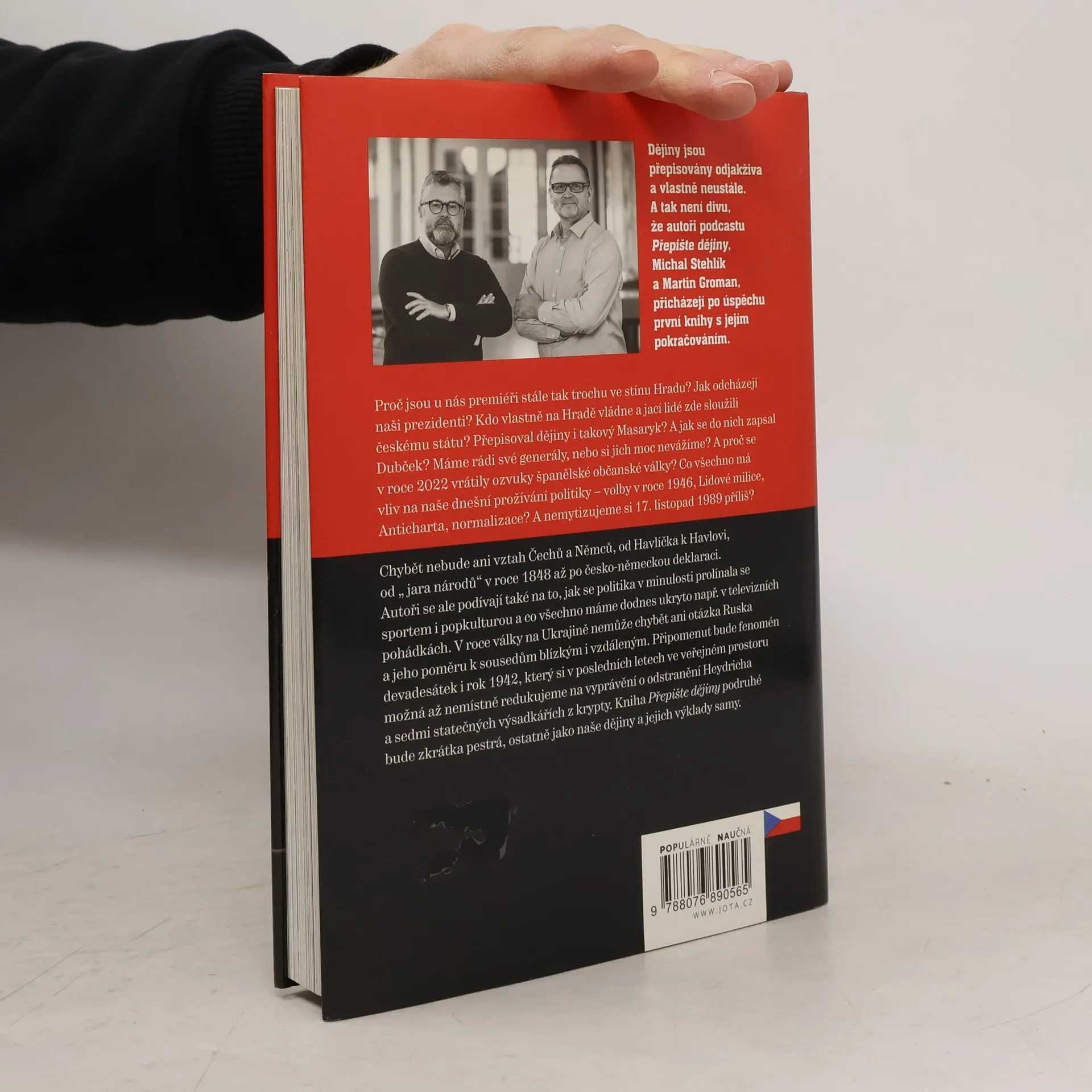 Oblíbený podcast podruhé v knižní podobě!Dějiny jsou přepisovány odjakživa a vlastně stále. A tak není divu, že autoři podcastu Přepište dějiny Michal Stehlík a Martin Groman po úspěšné první knize přicházejí s jejím pokračováním. Proč jsou u nás premiéři stále tak trochu ve stínu Hradu? Jak odcházejí naši prezidenti? A kdo vlastně na Hradě vládne a jací lidé zde sloužili českému státu? Přepisoval dějiny i takový Masaryk? A jak se do nich zapsal Dubček? Máme rádi své generály, nebo si jich moc nevážíme, a proč se v roce 2022 vrátily ozvuky španělské občanské války?Chybět nebude ani vztah Čechů a Němců a to od Havlíčka k Havlovi, tedy od jara národů v roce 1848 po česko-německou deklaraci. Co všechno má vliv na naše dnešní prožívání politiky – volby v roce 1946, Lidové milice, Anticharta, normalizace? A nemytizujeme si 17. listopad 1989 příliš? Autoři se ale podívají také na to, jak se v minulosti proplétala politika se sportem i popkulturou a co všechno máme dodnes ukryto v televizních pohádkách.V roce války na Ukrajině nemůže chybět ani téma Rusko a jeho poměr k sousedům blízkým i vzdáleným. Připomenut bude fenomén devadesátek i rok 1942, který si v posledních letech možná až nemístně redukujeme ve veřejném prostoru na vyprávění o odstranění Heydricha a sedmi statečných výsadkářích z krypty. Kniha Přepište dějiny podruhé bude zkrátka pestrá, ostatně jako samy naše dějiny a jejich výklady.