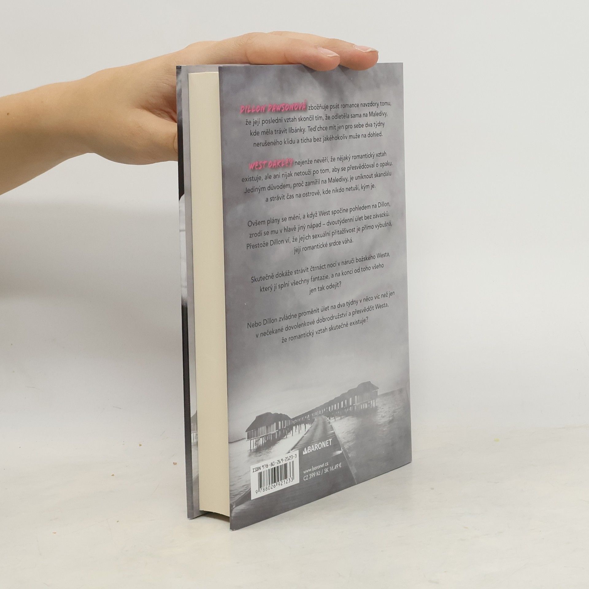 Dillon Dawsonová zbožňuje psát romance navzdory tomu, že její poslední vztah skončil tím, že odletěla sama na Maledivy, kde měla trávit líbánky. Teď chce mít jen pro sebe dva týdny nerušeného klidu a ticha bez jakéhokoliv muže na dohled.West Oakley nejenže nevěří, že nějaký romantický vztah existuje, ale ani nijak netouží po tom, aby se přesvědčoval o opaku. Jediným důvodem, proč zamířil na Maledivy, je uniknout skandálu a strávit čas na ostrově, kde nikdo netuší, kým je.Ovšem plány se mění, a když West spočine pohledem na Dillon, zrodí se mu v hlavě jiný nápad – dvoutýdenní úlet bez závazků. Přestože Dillon ví, že jejich sexuální přitažlivost je přímo výbušná, její romantické srdce váhá.Skutečně dokáže strávit čtrnáct nocí v náruči božského Westa, který jí splní všechny fantazie, a na konci od toho všeho jen tak odejít?Nebo Dillon zvládne proměnit úlet na dva týdny v něco víc, než jen nečekané dovolenkové dobrodružství, a přesvědčit Westa, že romantický vztah skutečně existuje?
