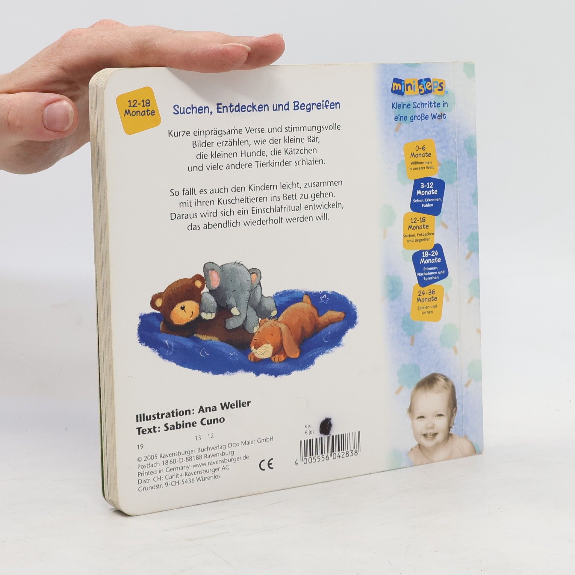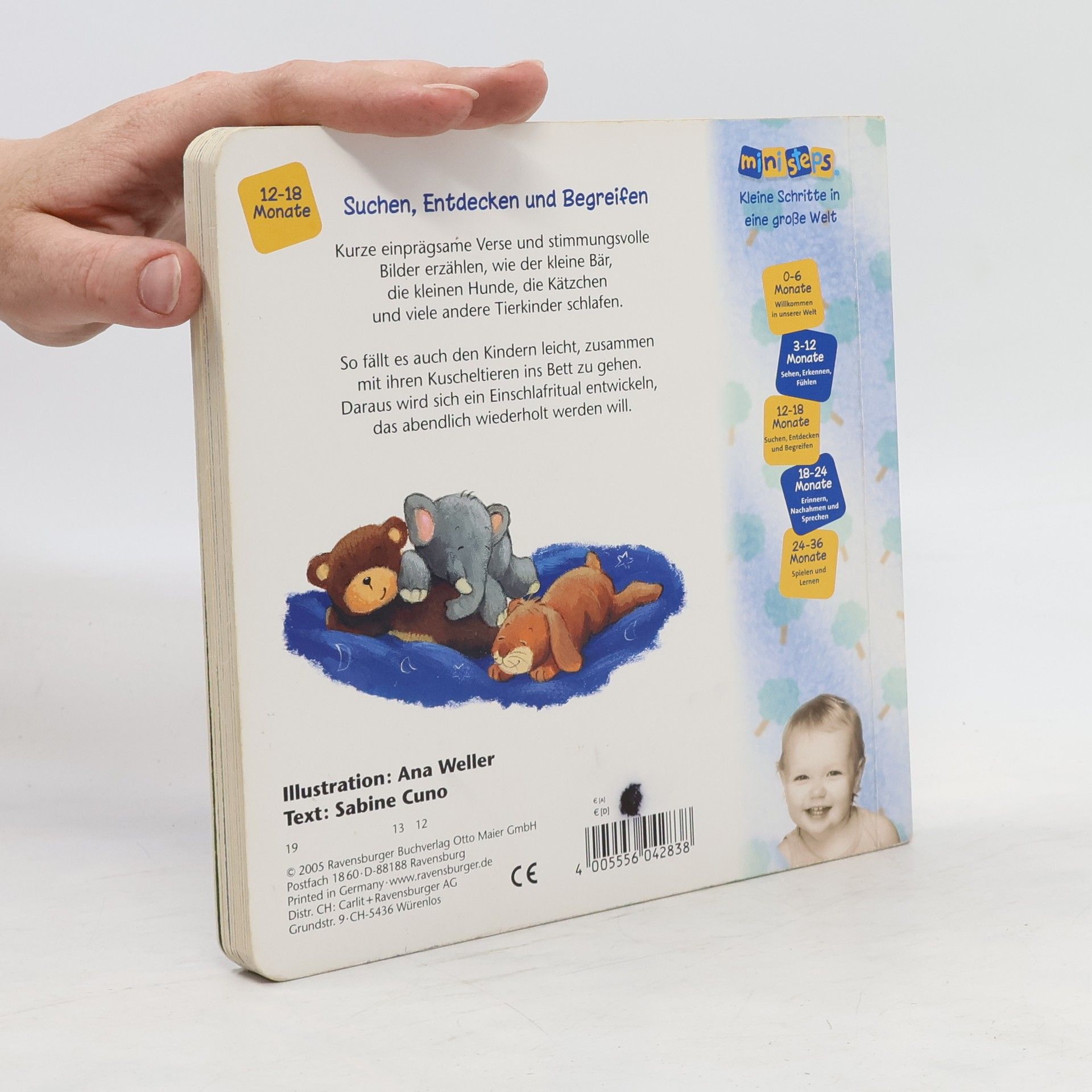 Ein Lieblings-Gutenacht-Buch für die Kleinsten! Liebevolle Gute-Nacht-Szenen zeigen, wie der kleine Bär, die kleinen Hunde und viele andere Tierkinder schlafen gehen. Zweiundzwanzig stimmungsvolle Bilder begleiten die Geschichten. Kurze emotionale Reime animieren zum Mitsprechen und sind ein ideales Ritual für Kinder, sodass es ihnen leichtfällt, ins Bett zu gehen. Diese besondere Geschichte bietet ein wunderschönes Einschlafritual und sollte in keinem Kinderzimmer fehlen. Die Bären schlafen in ihrer Höhle, die Schnecke zieht sich in ihr Haus zurück, und die Hundekinder kuscheln sich aneinander. Wie schlafen Igelkinder, Löwenbabys und kleine Pinguine? Fast 20 verschiedene Tierkinder werden liebevoll zu Bett gebracht. Die stimmungsvollen Bilder zeigen die Tiere und ihre Kinder in ihrem natürlichen Zuhause und bieten viele Gesprächsanlässe für Eltern und Kind. Die Reime führen durch das Buch, bis auch das Kind mit seinen Kuscheltieren schlafen geht. So wird das Einschlafen kinderleicht. - Unterstützt das Einschlafritual - Reime fördern die Sprachentwicklung - Mit den Lieblingstieren der Kleinen Vertrauen schenken. ministeps begleitet Babys und Kleinkinder auf ihren ersten Schritten ins Leben. Die vielfältigen ministeps Produkte bieten optimale Sinnesanreize, fördern das Erkennen von Farben, Formen und Bildern und ermutigen zum Krabbeln und Sprechen. Alle Produkte sind von höchster Ravensburger Qualität.