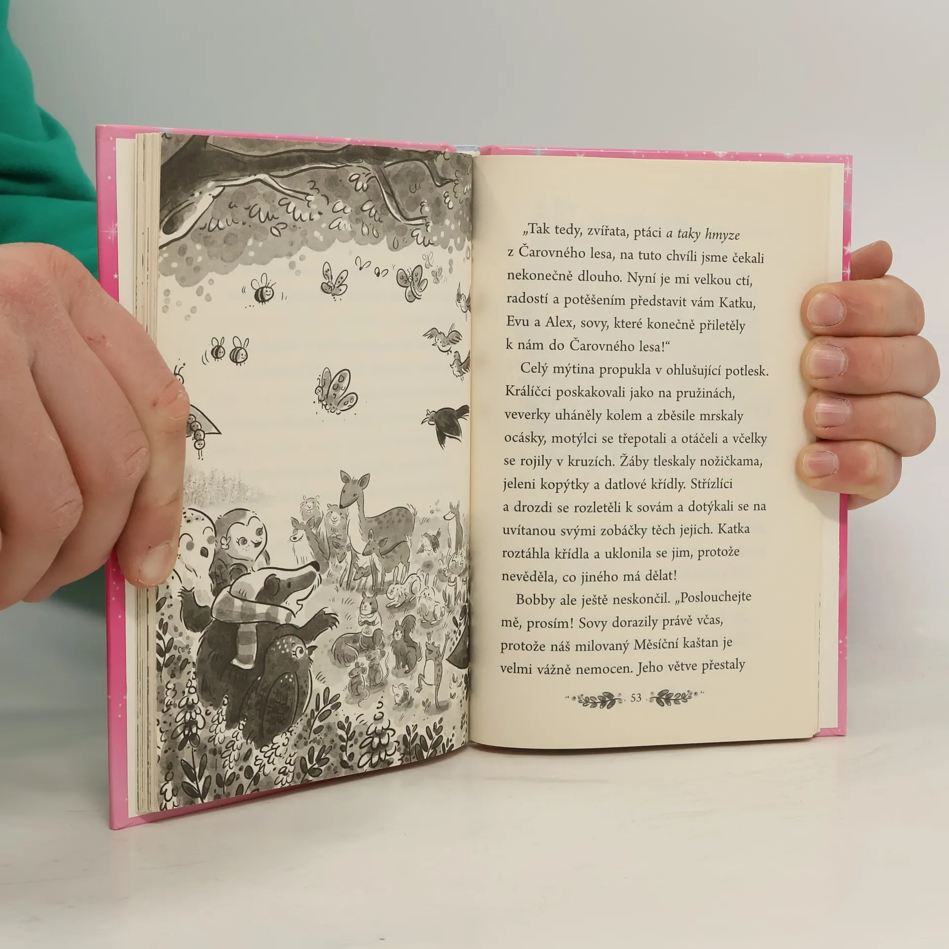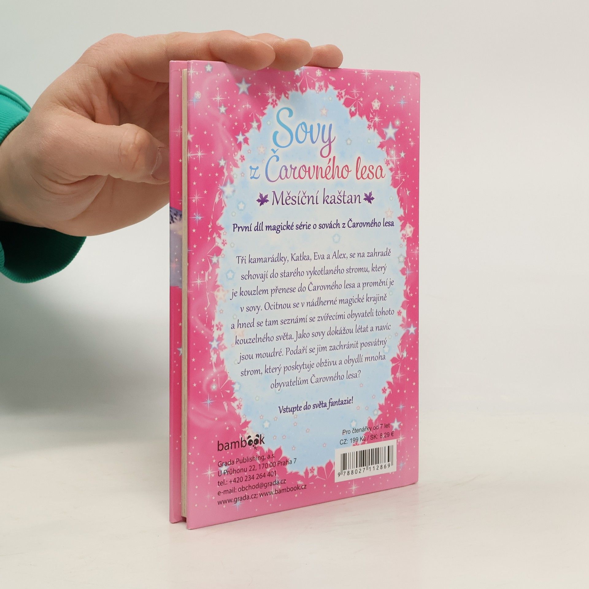 První díl magické série o sovách z Čarovného lesa Tři kamarádky, Katka, Eva a Alex, se na zahradě schovají do prastarého vykotlaného stromu, který je kouzlem přenese do Čarovného lesa a promění je v sovy. Ocitnou se v nádherné magické krajině a hned se tam seznámí se zvířecími obyvateli tohoto kouzelného světa. Jako sovy dokážou létat a navíc jsou moudré. Podaří se jim zachránit posvátný strom, který poskytuje obživu a obydlí mnoha obyvatelům Čarovného lesa? Vstupte do světa fantazie!