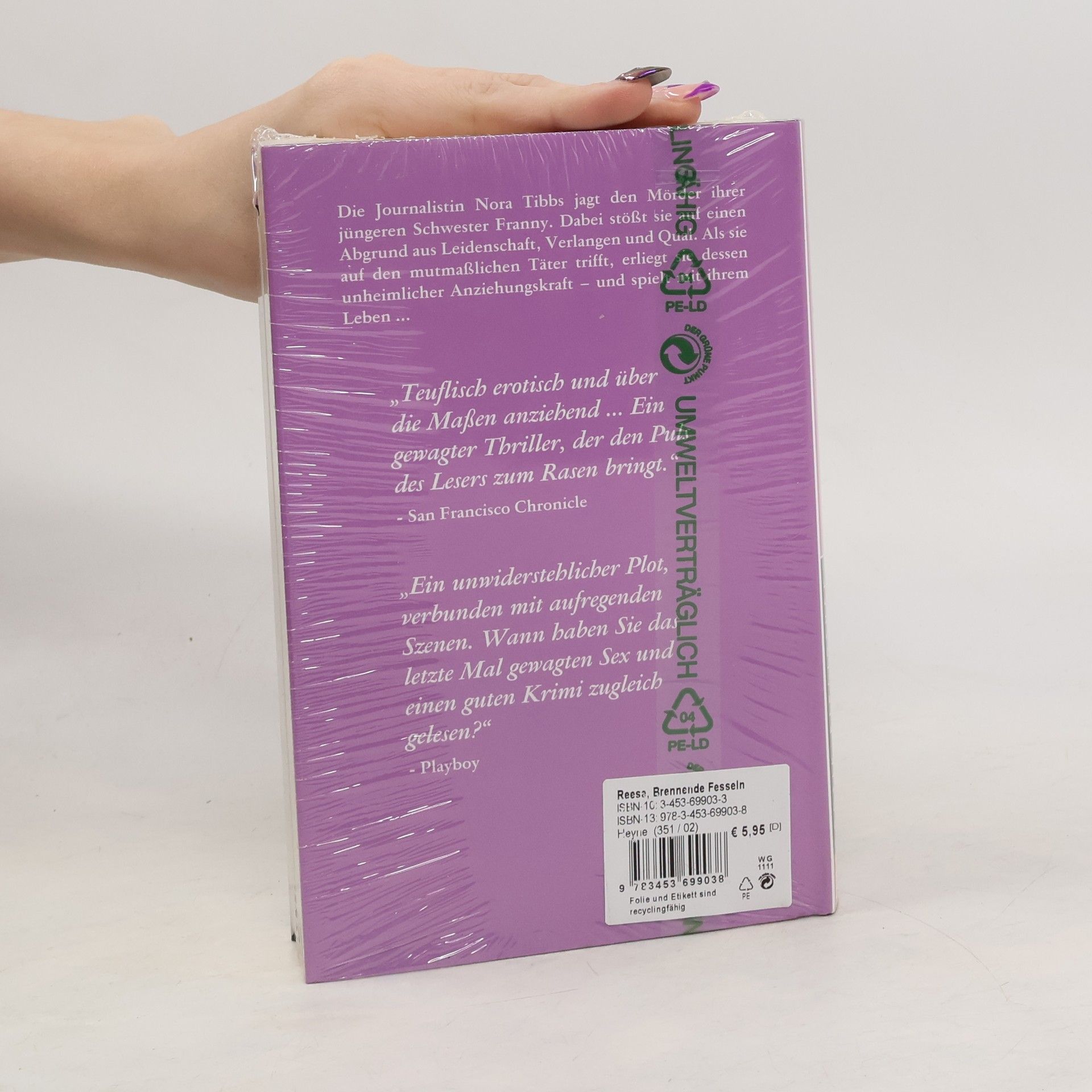 Die Journalistin Nora Tibbs jagt den Mörder ihrer jüngeren Schwester Franny. Dabei stößt sie auf einen Abgrund aus Leidenschaft, Verlangen und qual. Als sie auf den mutmaßlichen Täter trifft, erliegt sie dessen unheimlicher Anziehungskraft - und spielt mit ihrem Leben. „Teuflisch erotisch und über die Maßen anziehend. Ein gewagter Thriller, der den Puls des Lesers zum Rasen bringt.“ San Francisco Chronicle „Ein unwiderstehlicher Plot, verbunden mit aufregenden Szenen. Wann haben Sie das letzte Mal gewagten Sex und einen guten Krimi zugleich gelesen.“