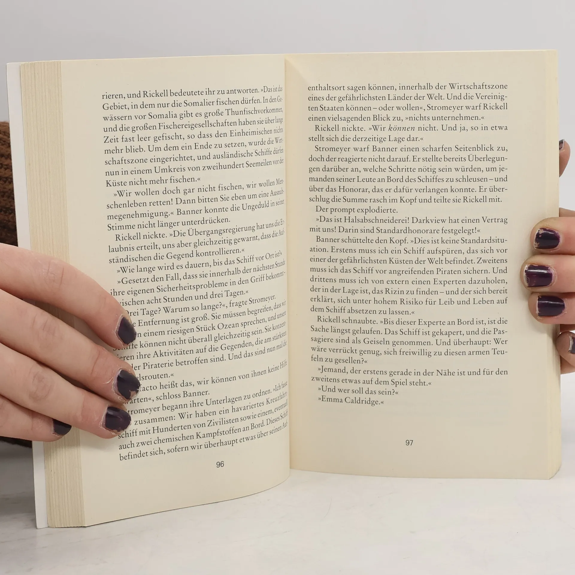 Golf von Aden. Die Biochemikerin Emma Caldridge wird im Auftrag der amerikanischen Regierung auf ein Passagierschiff geschleust, das von schwerbewaffneten Piraten bedroht wird. An Bord: Einhundert Menschen, Special Agent Cameron Sumner - und eine geheimnisvolle chemische Waffe. Emma muss die Waffe entschärfen. Ein Wettlauf gegen die Zeit beginnt.