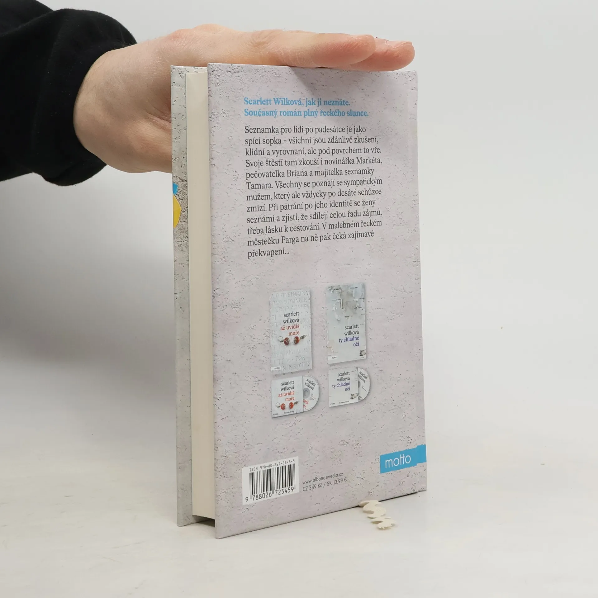 Scarlett Wilková, jak ji neznáte. Současný román plný řeckého slunce. Seznamka po padesátce je jako spící sopka – všichni jsou zdánlivě zkušení, klidní a vyrovnaní, ale pod povrchem to vře. Svoje štěstí tam zkouší i novinářka Markéta, pečovatelka Briana a majitelka seznamky Tamara. Všechny se poznají se sympatickým mužem, který ale vždycky po desáté schůzce zmizí. Při pátrání po jeho identitě se ženy seznámí a zjistí, že sdílejí celou řadu zájmů, třeba lásku k cestování. V malebném řeckém městečku Parga na ně pak čeká zajímavé překvapení...