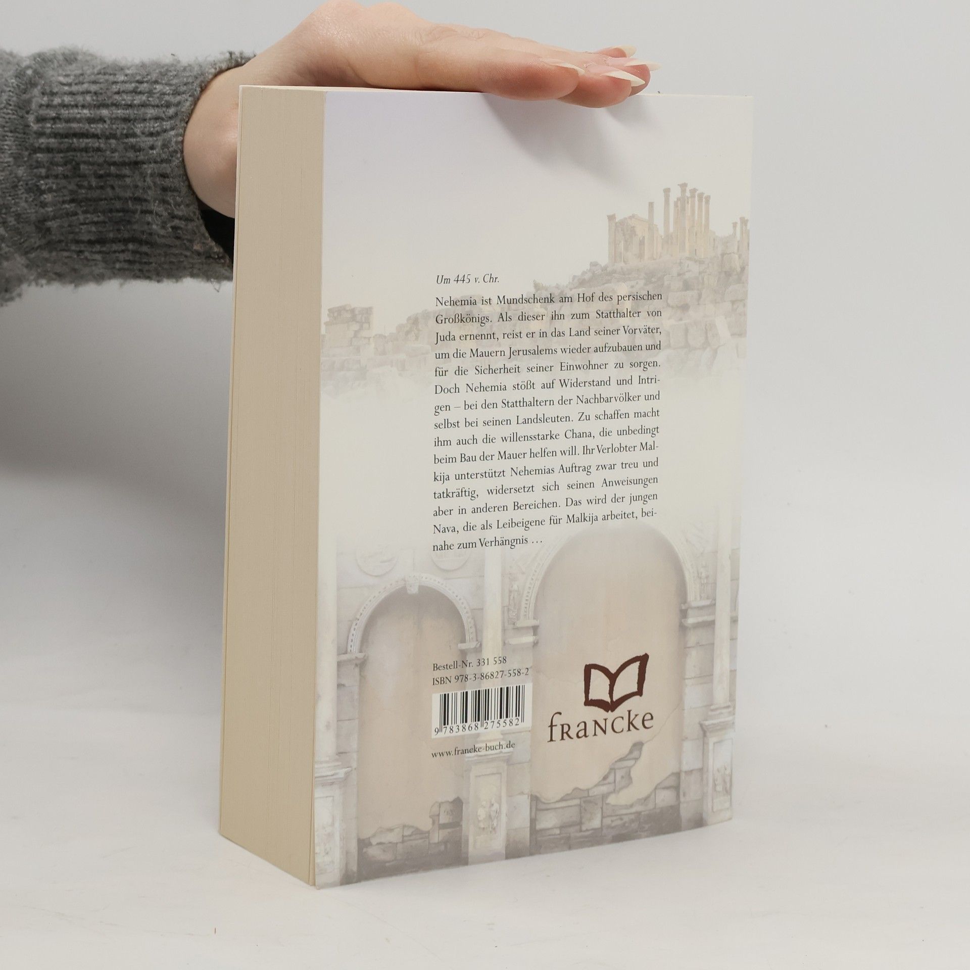 Um 445 v. Chr.: Nehemia, ein Mann in den besten Jahren, ist Mundschenk am Hof des persischen Großkönigs Artaxerxes. Als eine Delegation aus dem fernen Juda eintrifft, hört er mit Entsetzen, dass Jerusalems Mauern immer noch verwüstet sind. Durch das Eingreifen Gottes wird er zum Statthalter von Juda ernannt und reist in das Land seiner Vorväter. Im Gepäck hat er den geheimen Plan, die Mauern Jerusalems wieder aufzubauen und für die Sicherheit seiner Einwohner zu sorgen. Doch Nehemia stößt auf Widerstand – bei den Statthaltern der Nachbarvölker und sogar in den eigenen Reihen. Aber es gibt auch Menschen wie Chana und ihre Schwestern, die tatkräftig beim Wiederaufbau Jerusalems helfen. Und dann ist da noch Nava, ein junges Mädchen. Als Leibeigene eines reichen Landbesitzers hat sie ihren ganz eigenen Kampf auszufechten …
