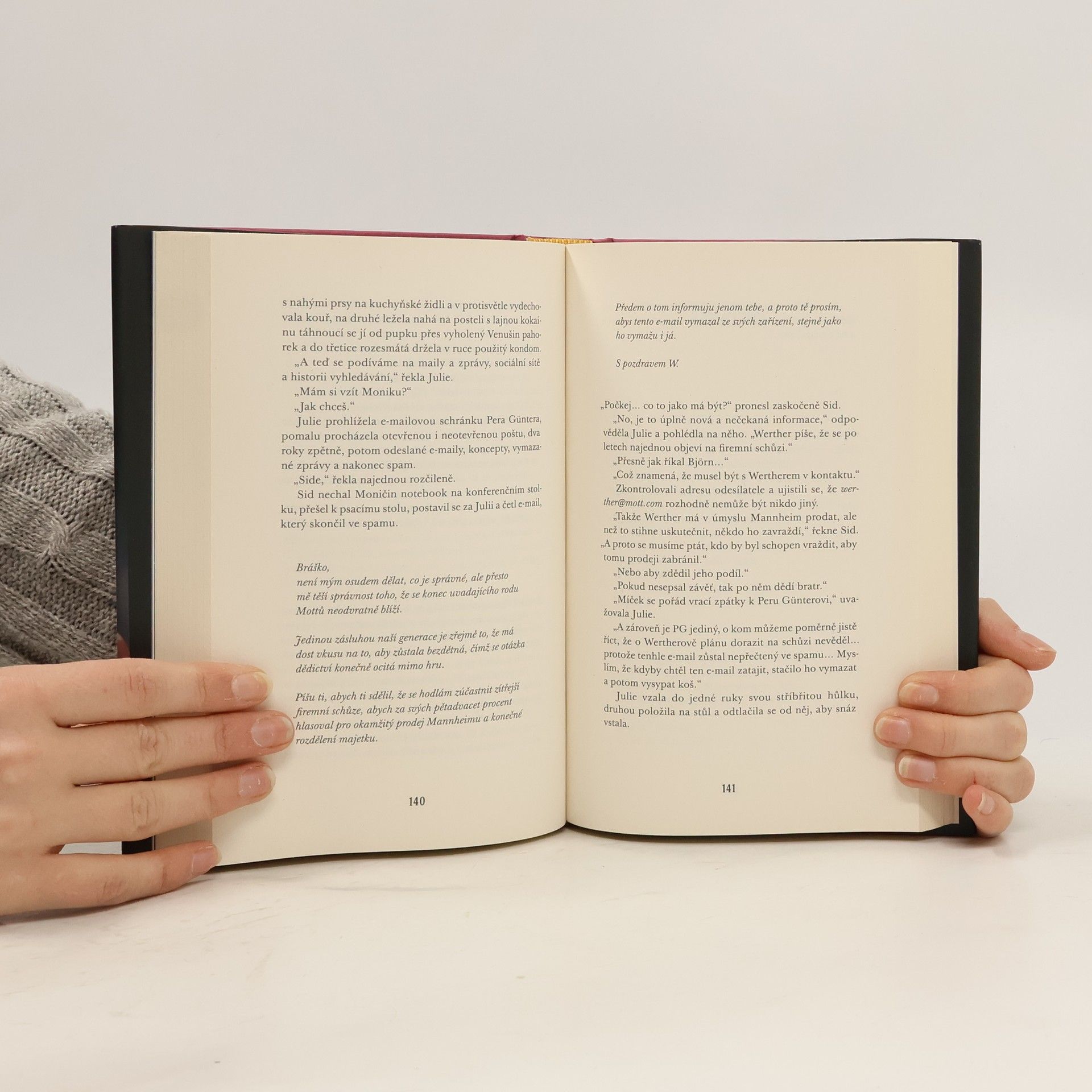 Lars Kepler přichází s napínavou detektivní sérií pod novým pseudonymem! Soukromá vyšetřovatelka Julie Starková přijímá u sebe v kanceláři neohlášenou návštěvu. Per Günter Mott, který je jedním z majitelů úspěšné rodinné firmy, se předchozího dne zúčastnil schůze správní rady firmy a povečeřel na svém panství v severozápadním Švédsku. Ráno pak v mobilu našel fotografii zkrvaveného svázaného muže s pytlem na hlavě. Kvůli výpadkům paměti způsobeným velkým množstvím vypitého alkoholu ale netuší, jak se snímek do jeho telefonu dostal a kdo je na něm zachycený. Ze strachu o svoji pověst si Per Günter chce Julii najmout, aby očistila jeho jméno, než se do případu vloží policie. Julie požádá svého bývalého manžela Sidneyho Mendelsona, který pracuje u městské policie, aby si vzal volno a s vyšetřováním jí pomohl. Stále ještě trochu doufá, že by to mohla být šance získat ho zpět. Julie a Sidney se společně vydají do honosného sídla, kde se postupně seznamují se všemi členy rodiny Pera Güntera. A jak se brzy ukáže, každý z nich má své tajemství.