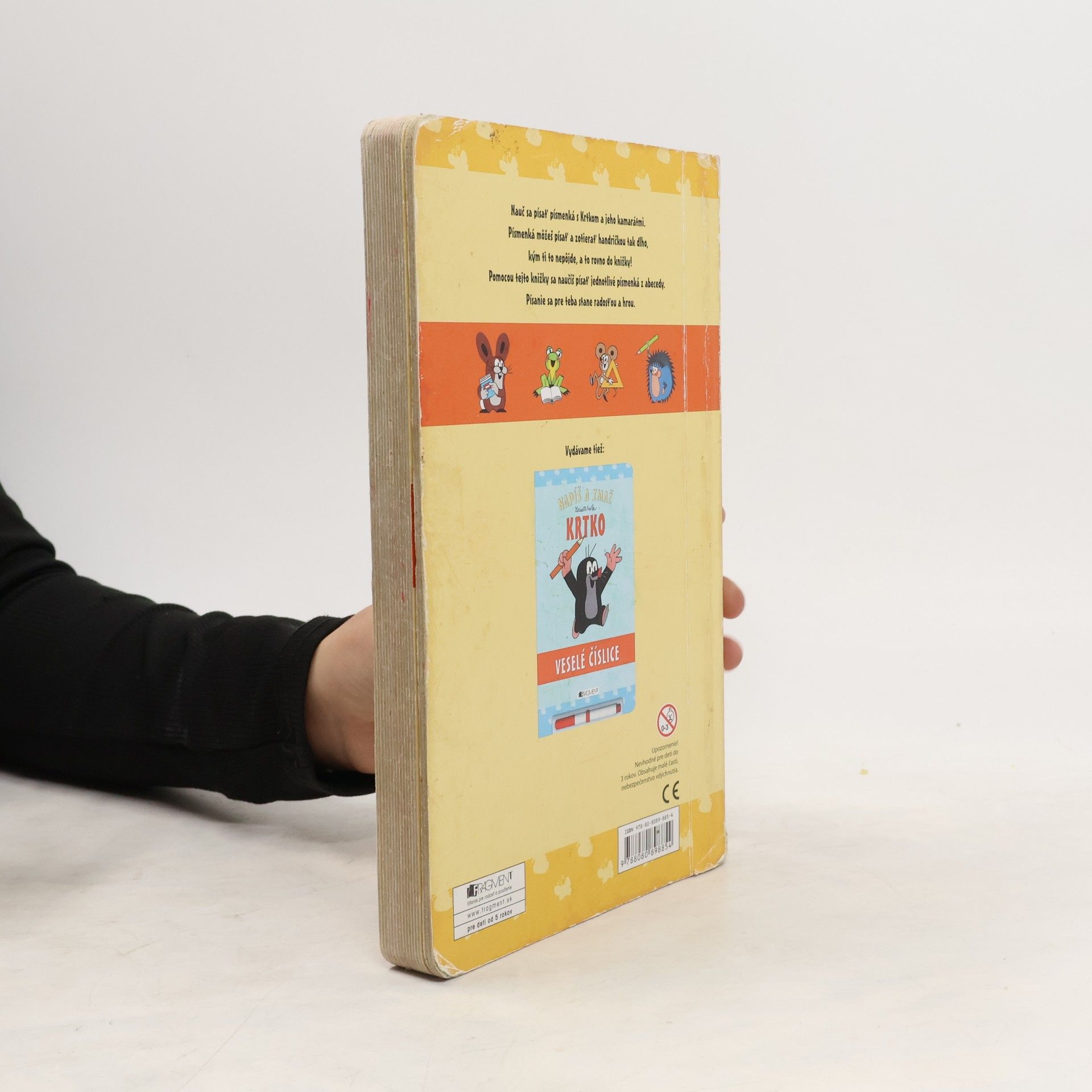 Nauč sa písať písmenká s Krtkom a jeho kamarátmi. Písmenká môžeš písať a zotierať handričkou tak dlho, kým ti to nepôjde, a to rovno do knižky! Pomocou tejto knižky sa naučíš písať jednotlivé písmenká z abecedy. Písanie sa pre teba stane radosťou a hrou.