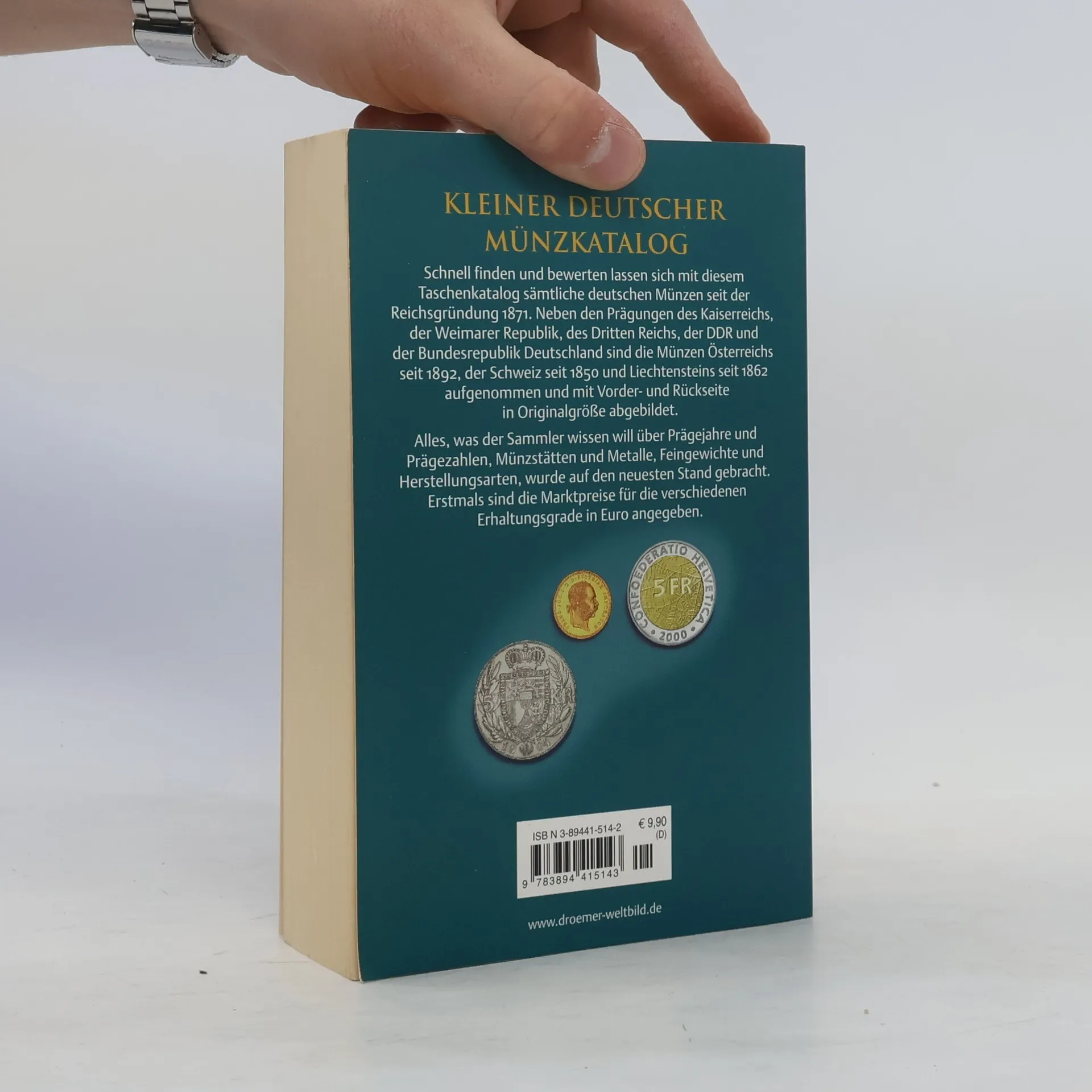 Mit dem „Vierländerkatalog“ lassen sich die deutschen Münzen seit der Gründung des Deutschen Reichs von 1871 bis heute, die österreichischen Münzen seit 1892, die Münzen der Schweiz seit 1850 und die Liechtensteins seit 1862 schnell finden und bewerten. Alle Münzen sind mit Vorder- und Rückseite abgebildet. Aktuelle Marktpreise (durchschnittliche Händlerverkaufspreise) sind für die drei Erhaltungsstufen schön, sehr schön und vorzüglich angegeben.