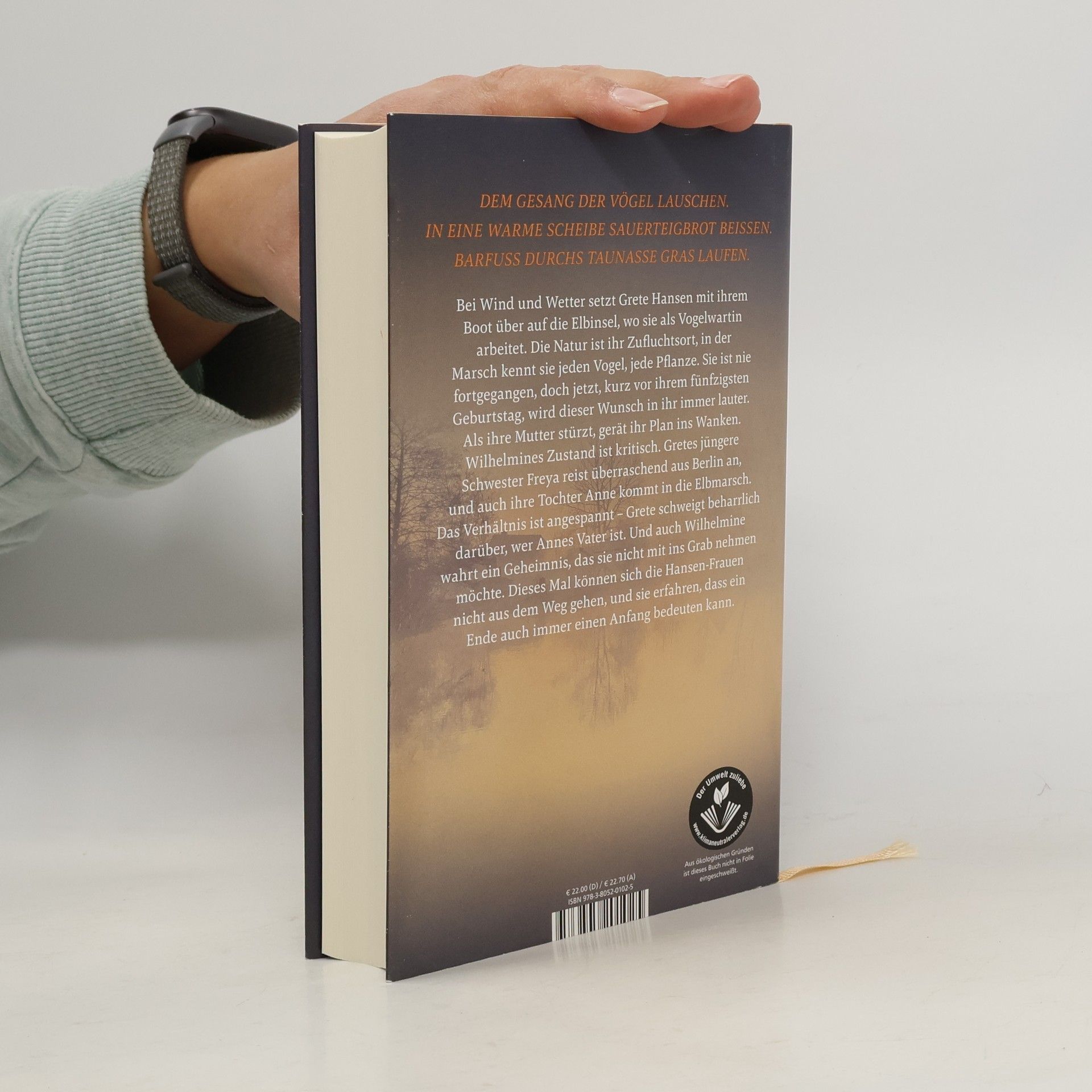 Ein Familienroman aus Norddeutschland: Ein altes Haus inmitten der Elbmarsch, die Kraft der Natur und drei Frauengenerationen, die nach Jahren dort wieder zusammenkommen. Gretes Zufluchtsort ist die Natur, vor allem das Gebiet in der Marsch, wo sie als Vogelwartin arbeitet. Ihr ganzes Leben hat sie hier verbracht: Erst kümmerte sie sich um ihre Tochter Anne, dann brauchte ihre Mutter Wilhelmine zunehmend Unterstützung mit Haus und Hof. Jetzt, kurz vor ihrem fünfzigsten Geburtstag, bietet sich eine Chance, aus den gewohnten Bahnen auszubrechen. Doch als Wilhelmine stürzt, gerät Gretes Plan ins Wanken. Ihre jüngere Schwester Freya reist aus Berlin an. Will sie wirklich helfen oder vielmehr ihrem eigenen Leben entfliehen? Auch Anne ist gekommen, um der geliebten Oma nahe zu sein. Doch das Verhältnis zu ihrer Mutter Grete ist angespannt – vielleicht weil Grete bis heute beharrlich darüber schweigt, wer ihr Vater ist. Und auch Wilhelmine wahrt noch ein Geheimnis und muss bald entscheiden, ob sie es mit ins Grab nehmen möchte. Bestseller-Autorin Romy Fölck schreibt über Themen, die Leser: innen beschäftigen: das Älterwerden, unerfüllter Kinderwunsch, ungelebte Träume und den Mut, diese noch zu verwirklichen .
