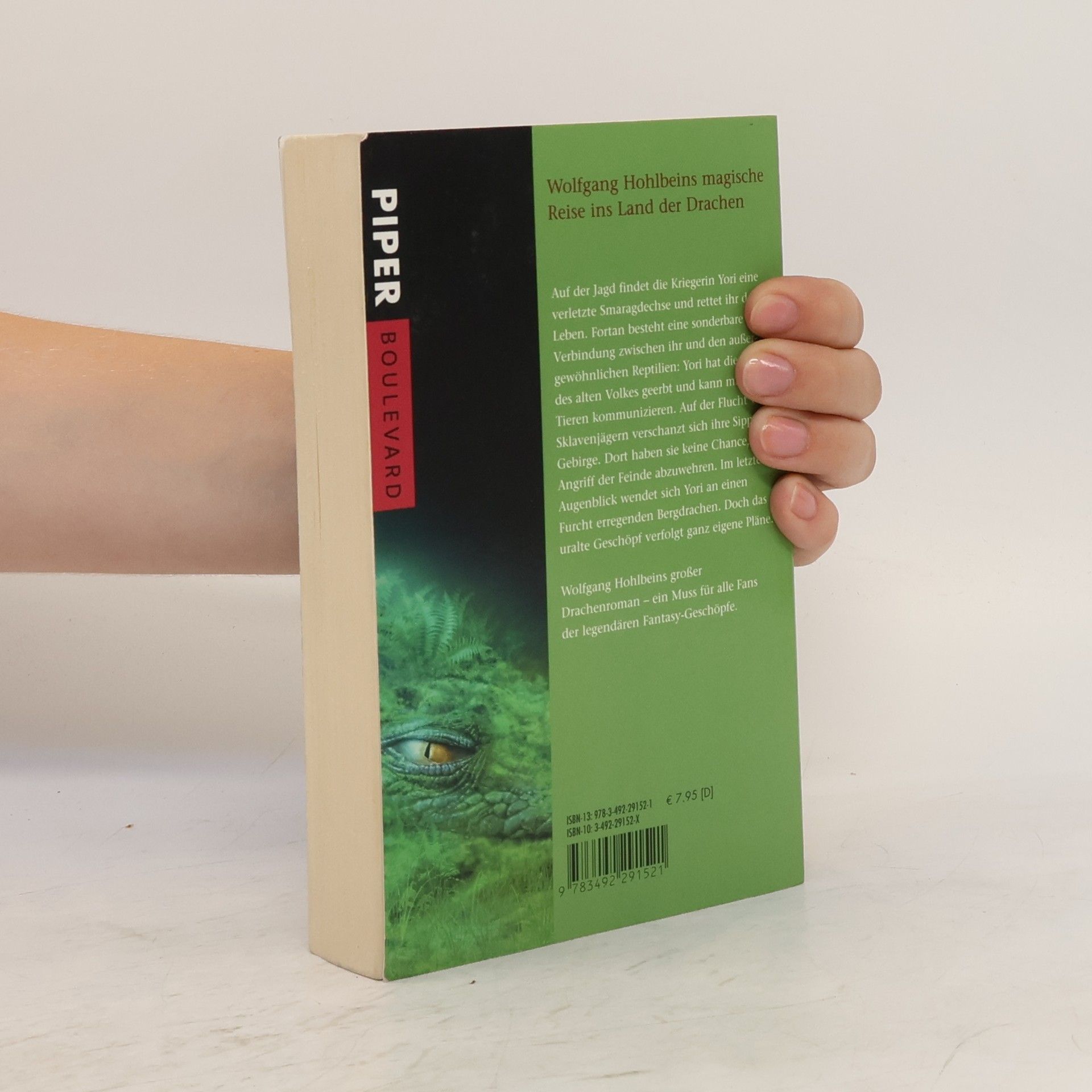Auf der Jagd findet die Kriegerin Yori eine verletzte Smaragdechse und rettet ihr das Leben. Fortan besteht eine sonderbare Verbindung zwischen ihr und den außergewöhnlichen Reptilien: Yori hat die Macht des alten Volkes geerbt und kann mit den Tieren kommunizieren. Auf der Flucht vor dem grausamen Rongo und seinen Sklavenjägern verschanzt sich ihre Sippe im Gebirge. Dort haben sie keine Chance, den Angriff der Feinde abzuwehren. Im letzten Augenblick wendet sich Yori an den Furcht erregenden Bergdrachen. Aber Drachen sind unberechenbar … Wolfgang Hohlbeins großer Drachenroman – ein Muss für alle Fans der legendären Fantasy-Geschöpfe.