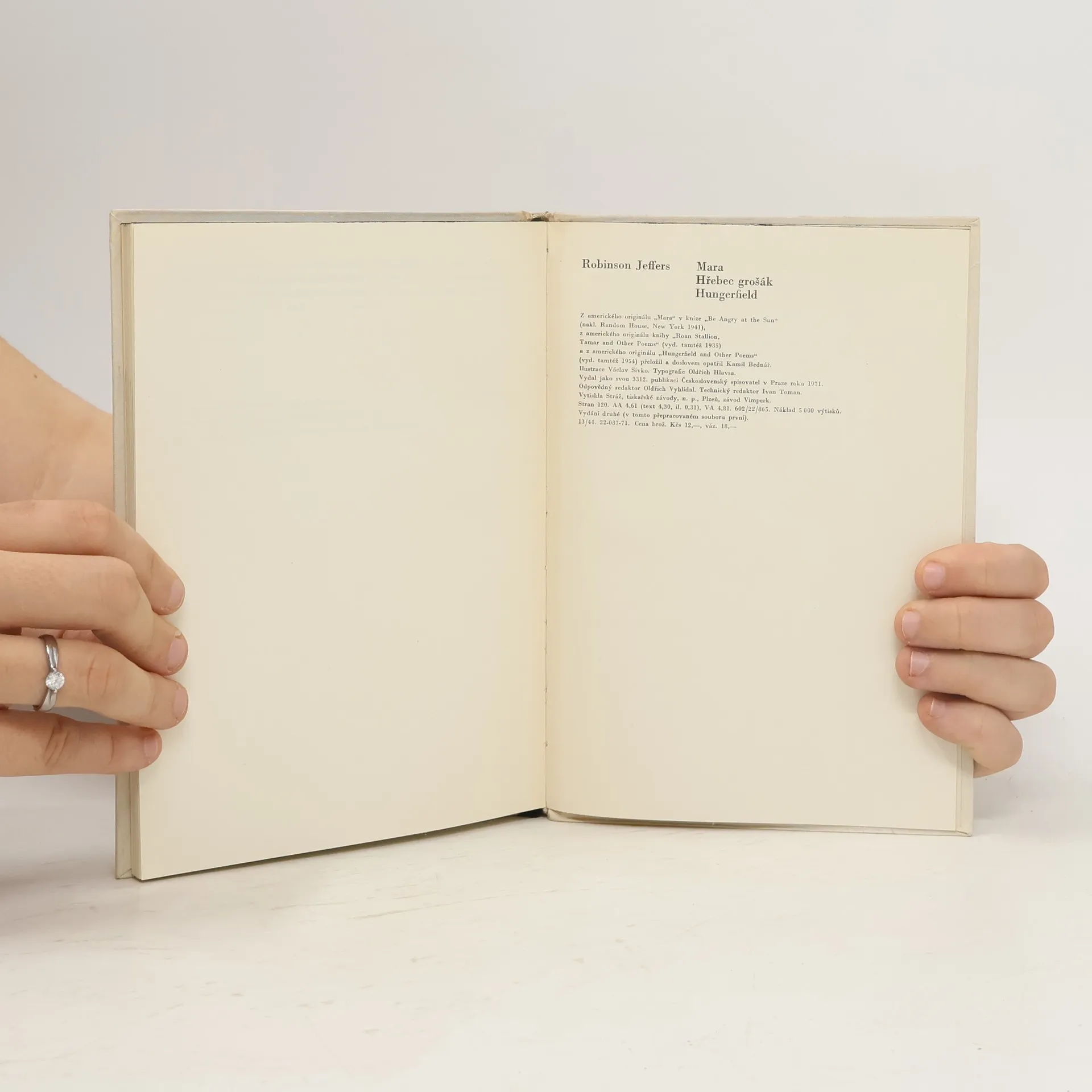 Mara. Hřebec grošák. Hungerfield, Robinson Jeffers, Kamil Bednář, Václav Sivko