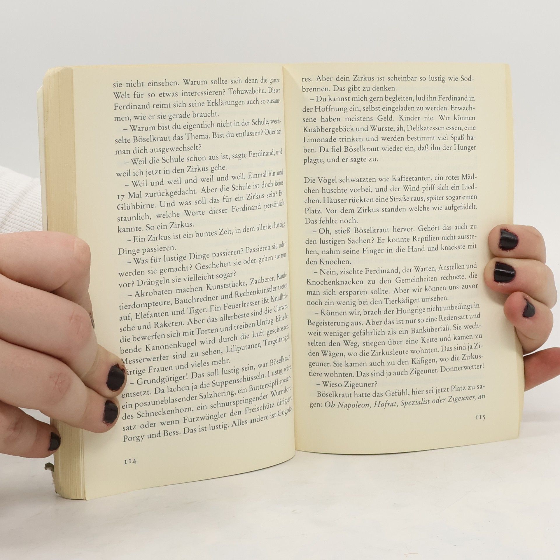 Böselkraut, der Hagere mit vierzehn Haaren auf dem Kopf, zieht in die Welt hinaus, seinen verschollenen Hund Knödel zu suchen. Ferdinand, das neunmalkluge Kind, begleitet ihn. Ihre Mißerfolge führen die Tücken der Sprache und des Alltags vor Augen, ihr Wille zur Anpassung scheitert an ihrer Weigerung, die Kompromisse des Common sense zu akzeptieren. Der sprachliche Entfesselungskünstler Franzobel beschreibt lustvoll die Irr-, Ab- und Geheimwege, wenn man das Wort beim Wort nimmt: sprühende Sinnkaskaden für Kindsköpfe.