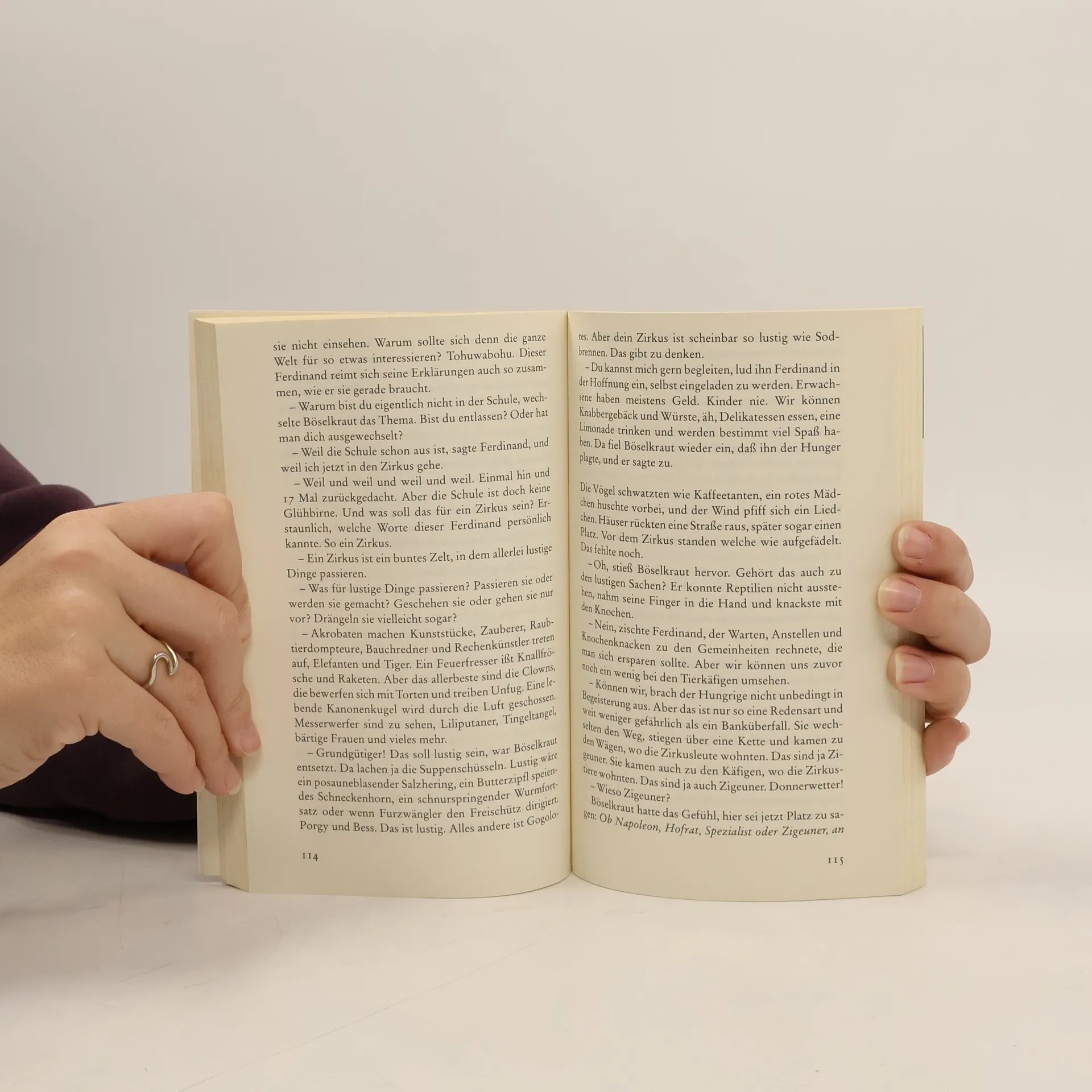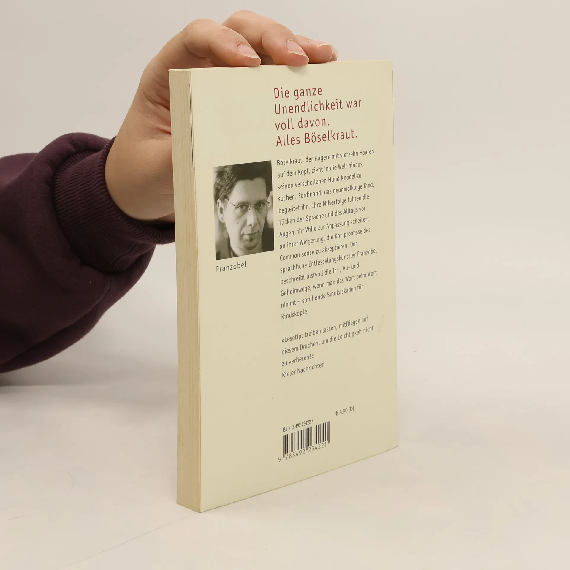 Böselkraut, der Hagere mit vierzehn Haaren auf dem Kopf, zieht in die Welt hinaus, seinen verschollenen Hund Knödel zu suchen. Ferdinand, das neunmalkluge Kind, begleitet ihn. Ihre Mißerfolge führen die Tücken der Sprache und des Alltags vor Augen, ihr Wille zur Anpassung scheitert an ihrer Weigerung, die Kompromisse des Common sense zu akzeptieren. Der sprachliche Entfesselungskünstler Franzobel beschreibt lustvoll die Irr-, Ab- und Geheimwege, wenn man das Wort beim Wort nimmt: sprühende Sinnkaskaden für Kindsköpfe.