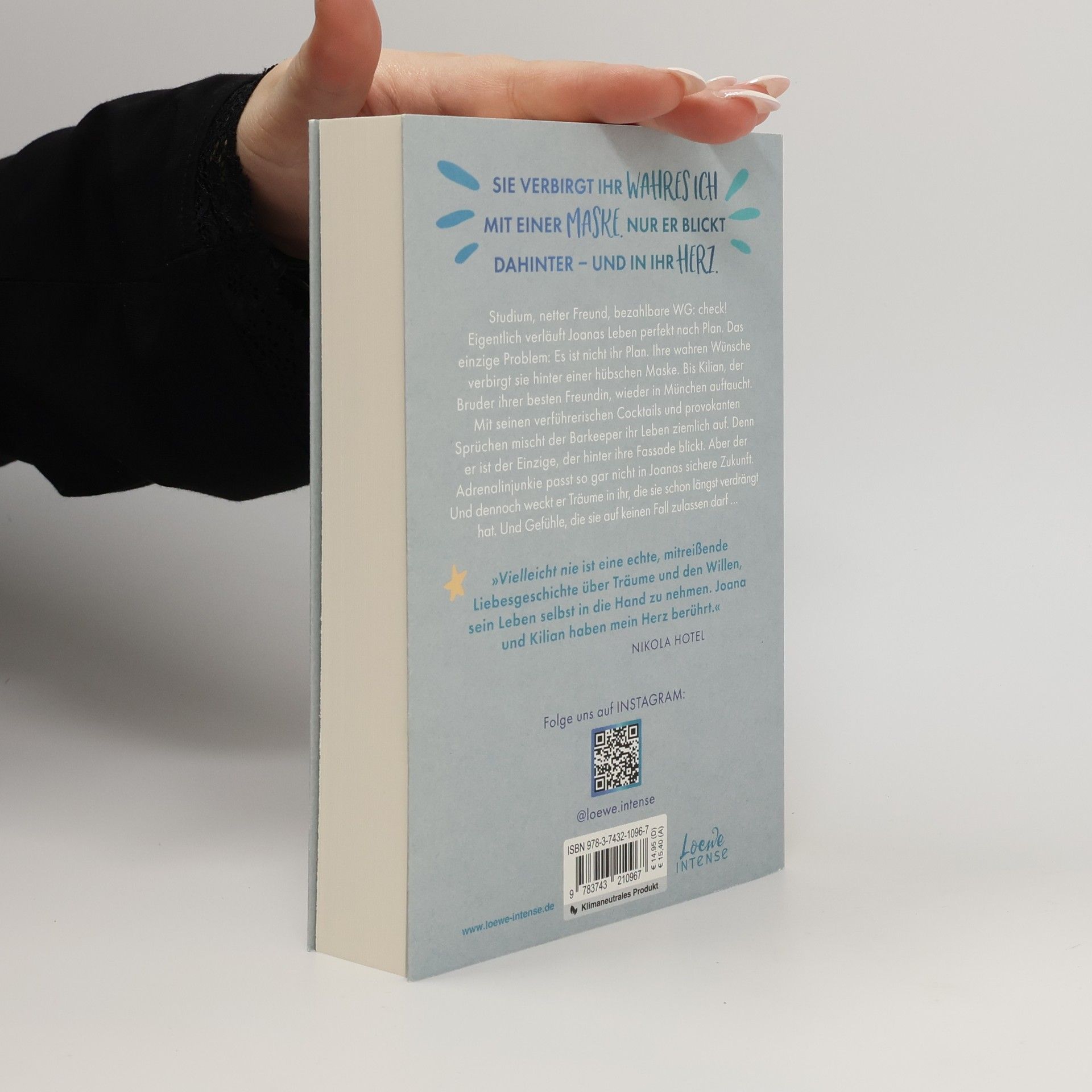 Das Buch ist bei deiner Buchhandlung vor Ort und bei vielen Online-Buchshops erhältlich! Mitreißend, prickelnd, ergreifend! - Die Reihe mit Herzklopfgarantie. Sie verbirgt ihr wahres Ich mit einer Maske. Nur er blickt dahinter – und in ihr Herz. Studium, netter Freund, bezahlbare WG: check! Eigentlich verläuft Joanas Leben perfekt nach Plan, das einzige Problem: Es ist nicht ihr Plan. Ihre wahren Wünsche verbirgt sie hinter einer hübschen Maske. Bis Killian, der Bruder ihrer besten Freundin, wieder in München auftaucht. Mit seinen verführerischen Cocktails und provokanten Sprüchen mischt der Barkeeper ihr Leben ziemlich auf. Denn er ist der Einzige, der hinter ihre Fassade blickt. Doch der Adrenalinjunkie passt so gar nicht in Joanas sichere Zukunft. Aber Kilian weckt Träume in ihr, die sie schon längst verdrängt hat. Und Gefühle, die sie auf keinen Fall zulassen darf … »Vielleicht nie ist eine echte, mitreißende Liebesgeschichte über Träume und den Willen, sein Leben selbst in die Hand zu nehmen. Joana und Kilian haben mein Herz berührt.« Nikola Hotel Im zweiten Band ihrer New Adult-Reihe zeigt Carolin Wahl , wie wichtig es ist, für sich selbst und seine eigenen Träume einzustehen. Eine humorvolle Liebesgeschichte, die auch ernste Themen wie Verlust und Zukunftsangst aufgreift. Mitreißend, prickelnd, ergreifend!