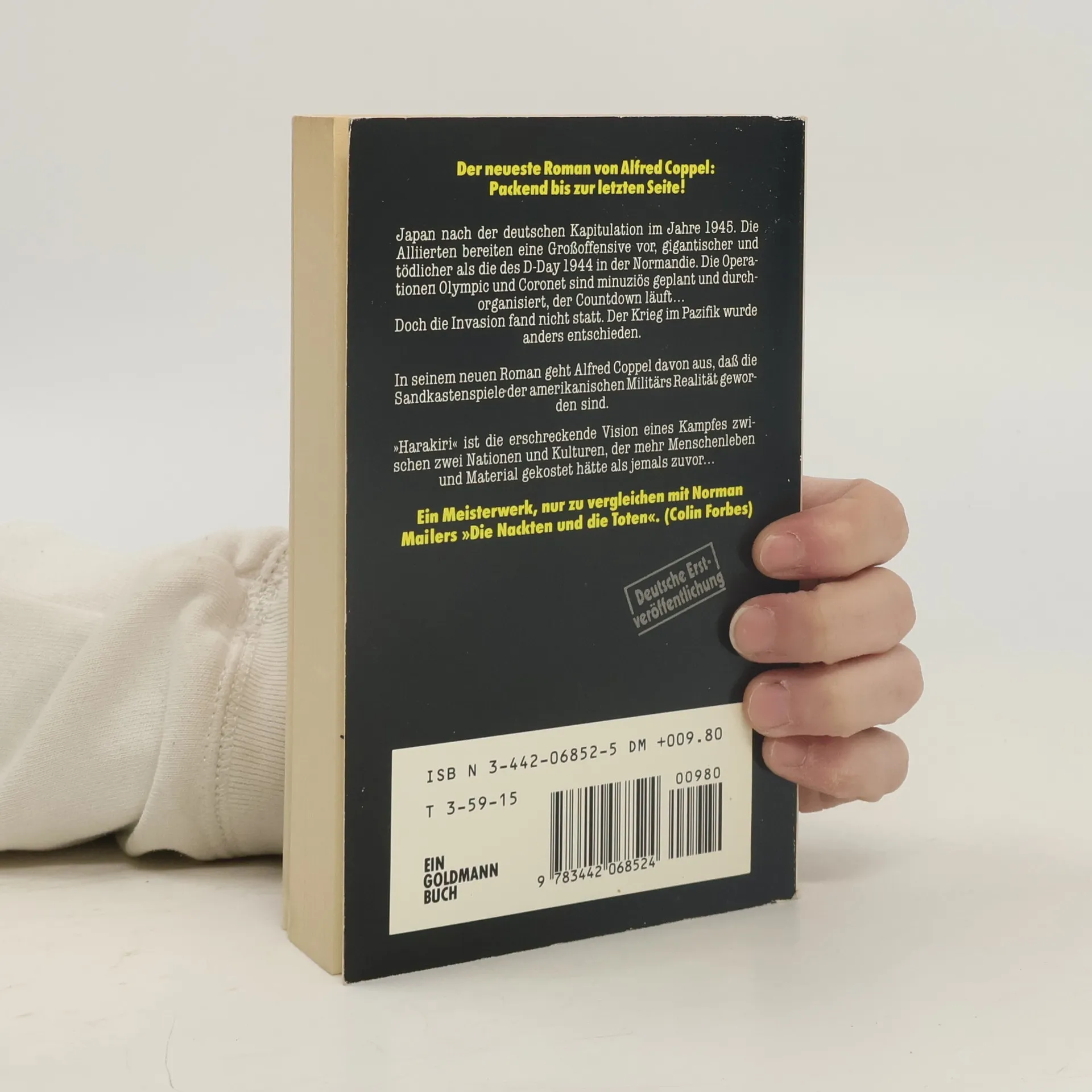 Japan nach der deutschen Kapitulation im Jahre 1945. Die Alliierten bereiten eine Großoffensive vor, gigantischer und tödlicher als die des D-Day 1944 in der Normandie. die Operationen Olympic und Coronet sind minuziös geplant und durchorganisiert, der Countdown läuft... Doch die Invasion fand nicht statt. Der Krieg im Pazifik wurde anders entschieden. In seinem neuen Roman geht Alfred Coppel davon aus, daß die Sandkastenspiele der amerikanischen Militärs Realität geworden sind. "Harakiri" ist die erschreckende Vision eines Kampfes zwischen zwei Nationen und Kulturen, der mehr Menschenleben und Material gekostet hätte als jemals zuvor...