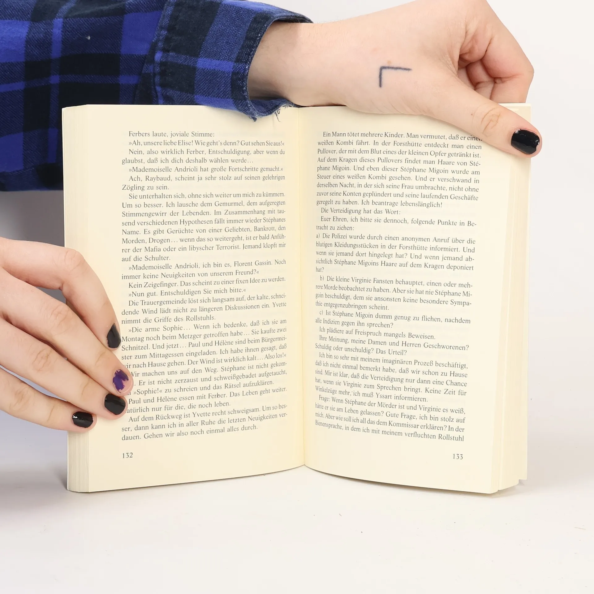 Französische Autorin, geb. 1956. - Elise Andrioli ist nach einem Unfall gelähmt und blind. In Gedanken beschäftigt sie sich intensiv mit dem Serienmörder, der in der Region kleine Jungen tötet und verstümmelt. Mit Entsetzen erkennt sie, daß es jemand aus ihrer allernächsten Umgebung sein muß.