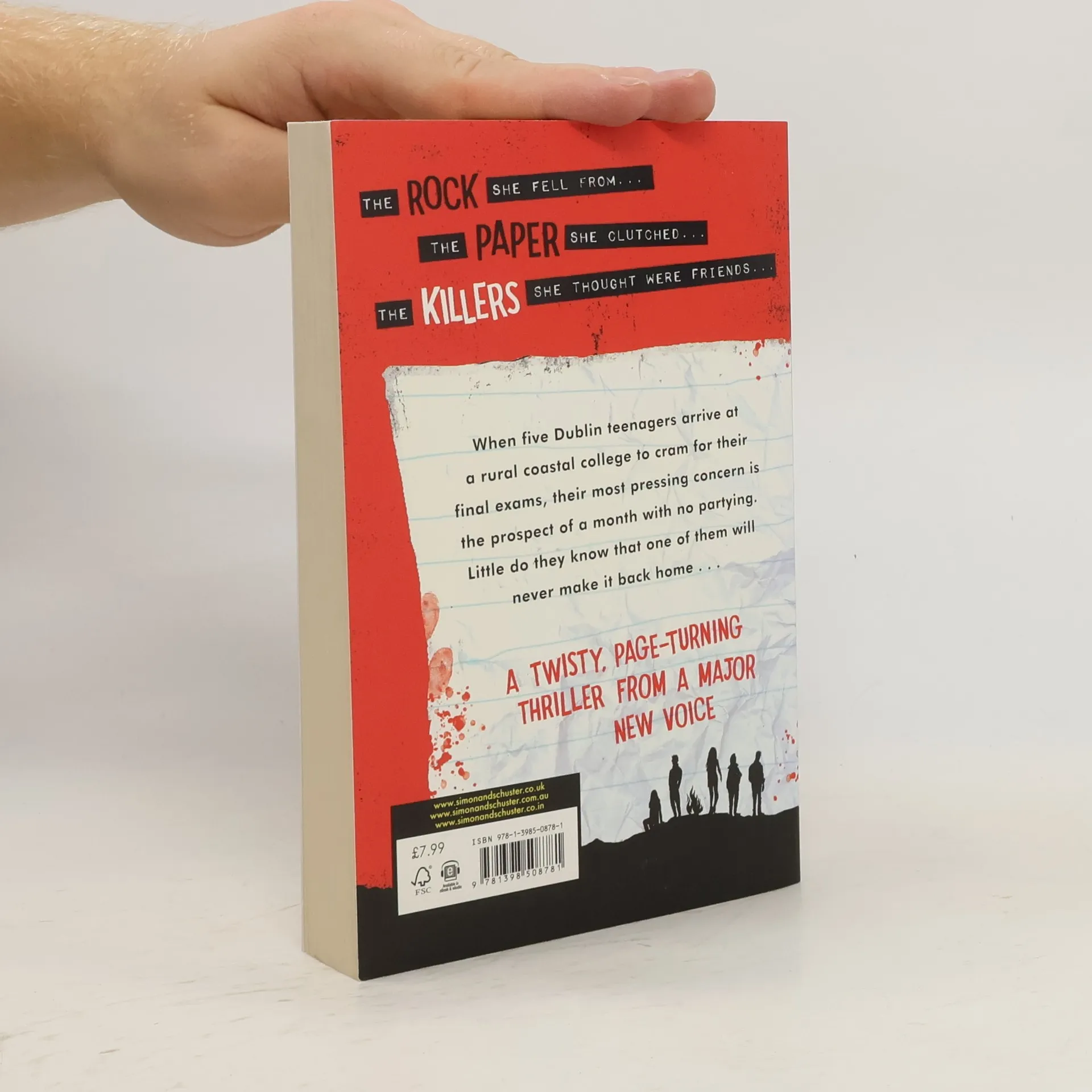 The ROCK she fell from. The PAPER she clutched. The KILLERS she thought were her friends . . . When five teenagers arrive at rural St Lunas to cram for their final exams, their most pressing concern is the prospect of a month in the only college with zero reputation for partying. When they discover that St Lunas was once an asylum, they’re pretty weirded out, especially when they start to receive strange ‘gifts’ from an unknown stranger.One night, when a beach party gets out of hand, the five friends suddenly become four. We have the rock, the paper . . . but who is the killer?