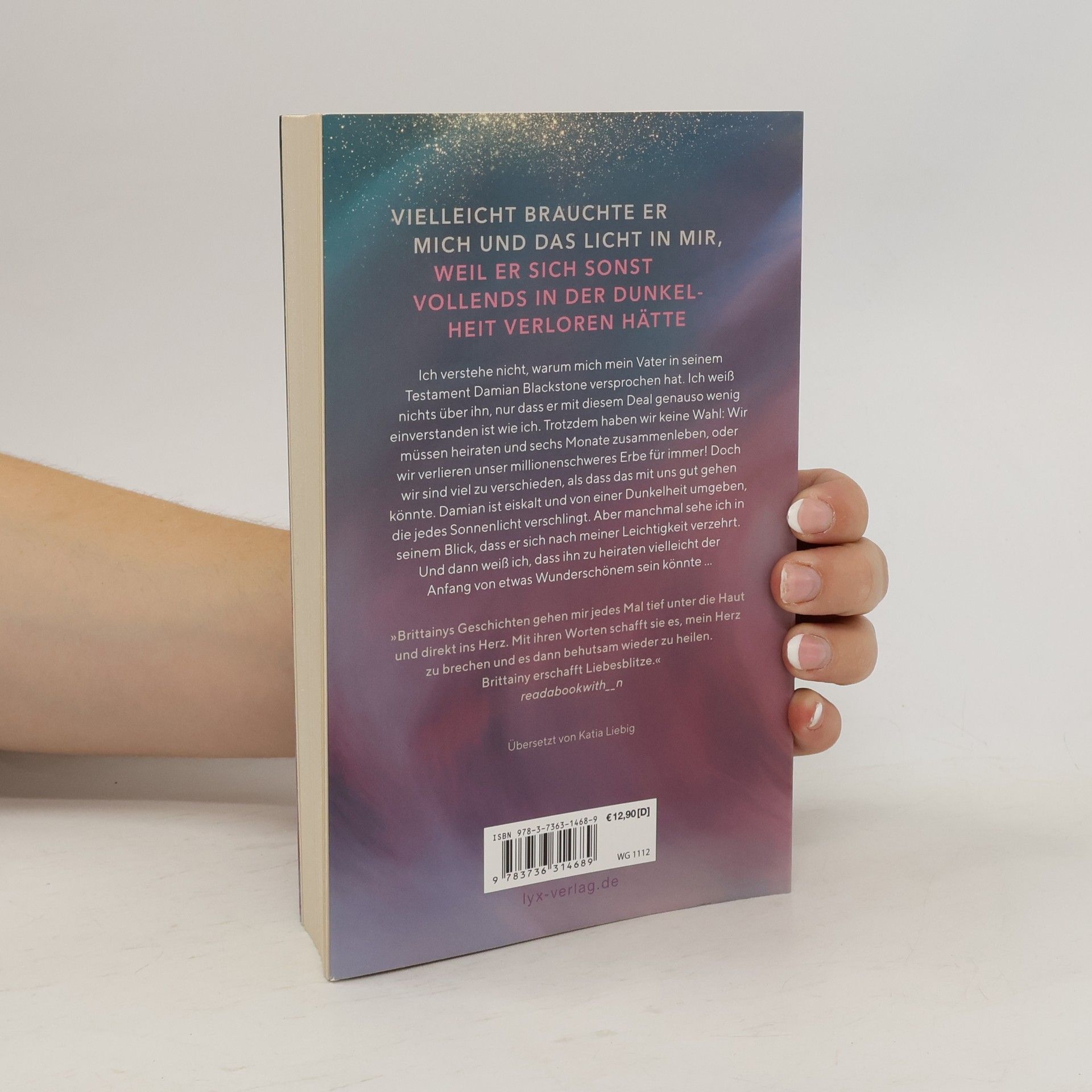 Vielleicht brauchte er mich und das Licht in mir, weil er sich sonst vollends in der Dunkelheit verloren hätte Ich verstehe nicht, warum mich mein Vater in seinem Testament Damian Blackstone versprochen hat. Ich weiß nichts über ihn, nur dass er mit diesem Deal genauso wenig einverstanden ist wie ich. Trotzdem haben wir keine Wahl: Wir müssen heiraten und sechs Monate zusammenleben, oder wir verlieren unser millionenschweres Erbe für immer! Doch wir sind viel zu verschieden, als dass das mit uns gut gehen könnte. Damian ist eiskalt und von einer Dunkelheit umgeben, die jedes Sonnenlicht verschlingt. Aber manchmal sehe ich in seinem Blick, dass er sich nach meiner Leichtigkeit verzehrt. Und dann weiß ich, dass ihn zu heiraten vielleicht der Anfang von etwas Wunderschönem sein könnte ... „Brittainys Geschichten gehen mir jedes Mal tief unter die Haut und direkt ins Herz. Mit ihren Worten schafft sie es, mein Herz zu brechen und es dann behutsam wieder zu heilen. Brittainy erschafft Liebesblitze.“ READABOOKWITH_ _N Band 3 der emotionalen COMPASS-Reihe von SPIEGEL-Bestseller-Autorin Brittainy C. Cherry