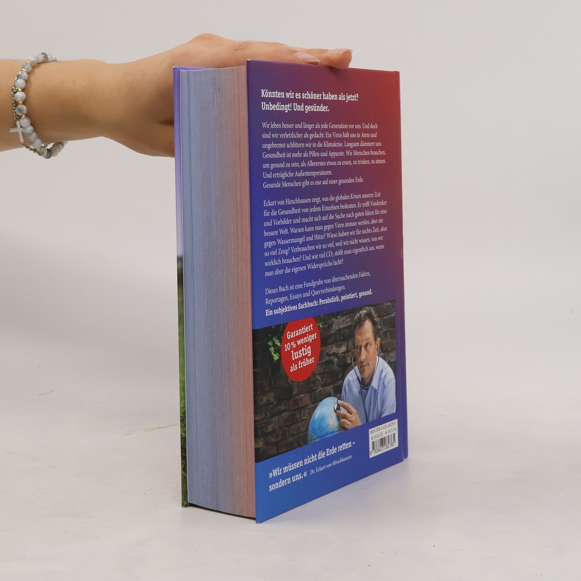 Die großen Themen unserer Zeit in überraschenden Zusammenhängen Könnten wir es schöner haben als jetzt? Unbedingt! Und gesünder. Wir leben besser und länger als jede Generation vor uns. Und doch sind wir verletzlicher als gedacht: Ein Virus hält uns in Atem und ungebremst schlittern wir in die Klimakrise. Langsam dämmert uns: Gesundheit ist mehr als Pillen und Apparate. Wir Menschen brauchen, um gesund zu sein, als Allererstes etwas zu essen, zu trinken, zu atmen. Und erträgliche Außentemperaturen. Gesunde Menschen gibt es nur auf einer gesunden Erde. Eckart von Hirschhausen zeigt, was die globalen Krisen unserer Zeit für die Gesundheit von jedem Einzelnen von uns bedeuten. Er trifft Vordenker und Vorbilder und macht sich auf die Suche nach guten Ideen für eine bessere Welt. Warum kann man gegen Viren immun werden, aber nie gegen Wassermangel und Hitze? Wieso haben wir für nichts Zeit, aber so viel Zeug? Verbrauchen wir so viel, weil wir nicht wissen, was wir wirklich brauchen? Und wie viel CO2 stößt man eigentlich aus, wenn man über die eigenen Widersprüche lacht? Dieses Buch ist eine Fundgrube von überraschenden Fakten, Reportagen, Essays und Querverbindungen. Ein subjektives Sachbuch: persönlich, pointiert, gesund.