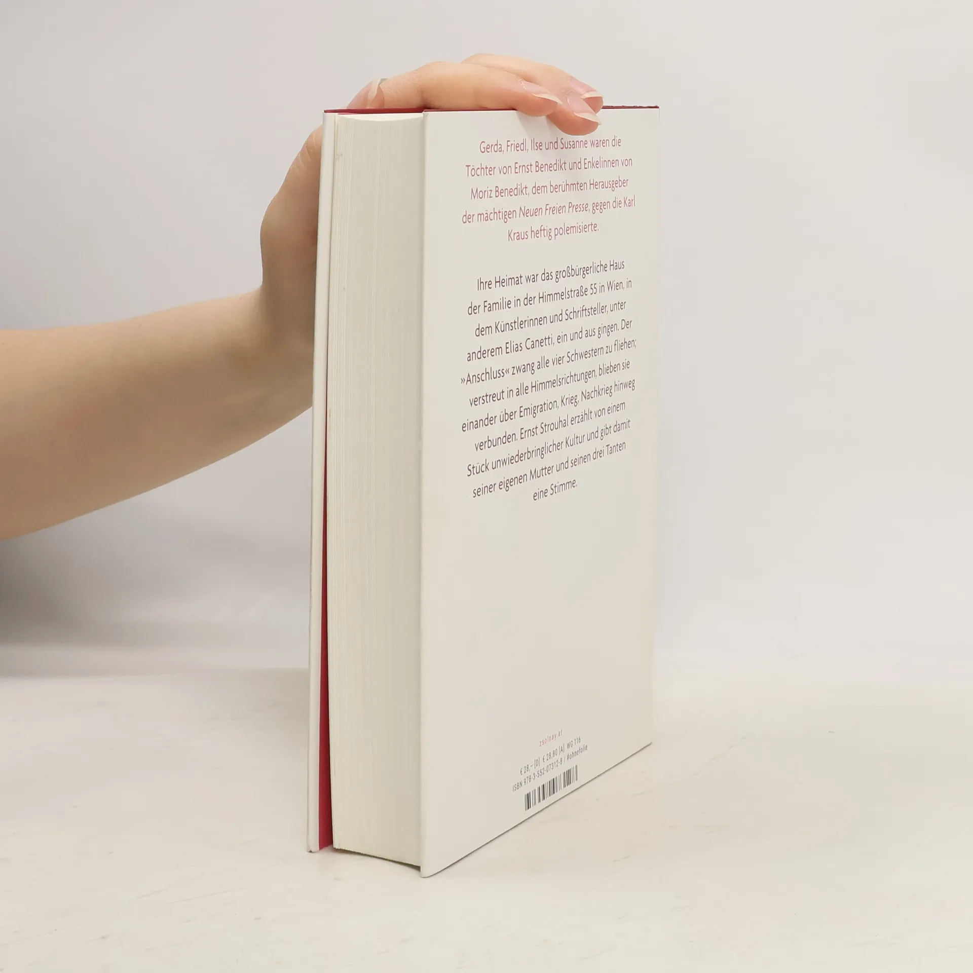 Mit Verbindungen zu Karl Kraus und Elias Canetti: Ernst Strouhal erzählt eine große Wiener Familiengeschichte des 20. Jahrhunderts. Gerda, Friedl, Ilse und Susanne waren die Töchter von „Benedikt-Sohn“ und Enkelinnen von Moriz Benedikt, dem berühmten Herausgeber der mächtigen „Neuen Freien Presse“, gegen die Karl Kraus heftig polemisierte. In unmittelbarer Nachbarschaft der Benedikts lebte Elias Canetti, dessen Blicken die Töchter nicht entgingen und von denen er sich in den Salon einladen ließ. Der „Anschluss“ machte dem privilegierten Dasein ein Ende, den vier Schwestern aber gelang die Flucht. Verstreut in alle Himmelsrichtungen, blieben sie einander über Emigration, Krieg, Nachkrieg hinweg verbunden. Ernst Strouhal erzählt von einem Stück unwiederbringlicher Kultur und gibt damit seiner eigenen Mutter und seinen drei Tanten eine Stimme.
