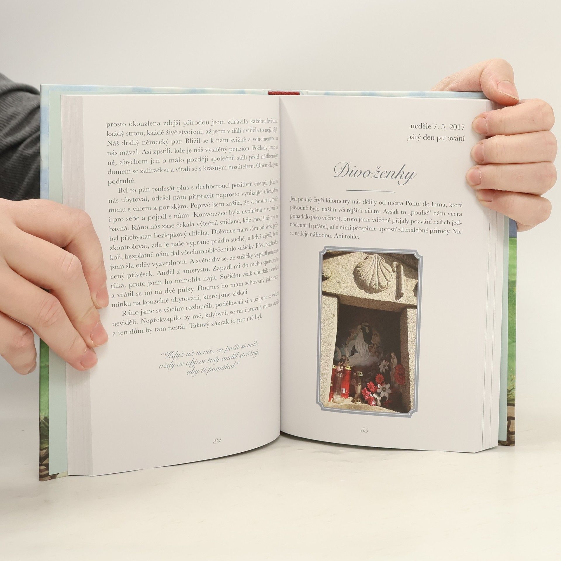 Je opravdu poutní cesta do Santiaga de Compostela tou zázračnou a nezapomenutelnou, jak se o ní tvrdí? Skutečně se na ní dějí zázraky, jak všichni říkají? Je vůbec možné, že vás může změnit? A vskutku díky ní začnete věřit na anděly? Kniha je velmi intimním příběhem o ženě, která se rozhodla zanechat doma své tříleté dítě a svého muže, aby se vydala na poutní cestu s cílem najít opět samu sebe a uzdravit vše, co jí tížilo a komplikovalo být dobrou matkou a ženou. Kniha je nejen o poznání a uvědomění si, o potkávání andělů v podobě lidí, o zázracích, které se dějí, o poselství, která pomáhají, o snech, které se plní, ale i o smutcích, trápeních, radostech i různých kuriozitách, které vás na této cestě můžou potkat. Protože nic se neděje náhodou. Natož na této pouti. Autorkou knihy je populární herečka Kristýna Janáčková. Její příběh dokreslují poutavé fotografie i výstižné ilustrace.