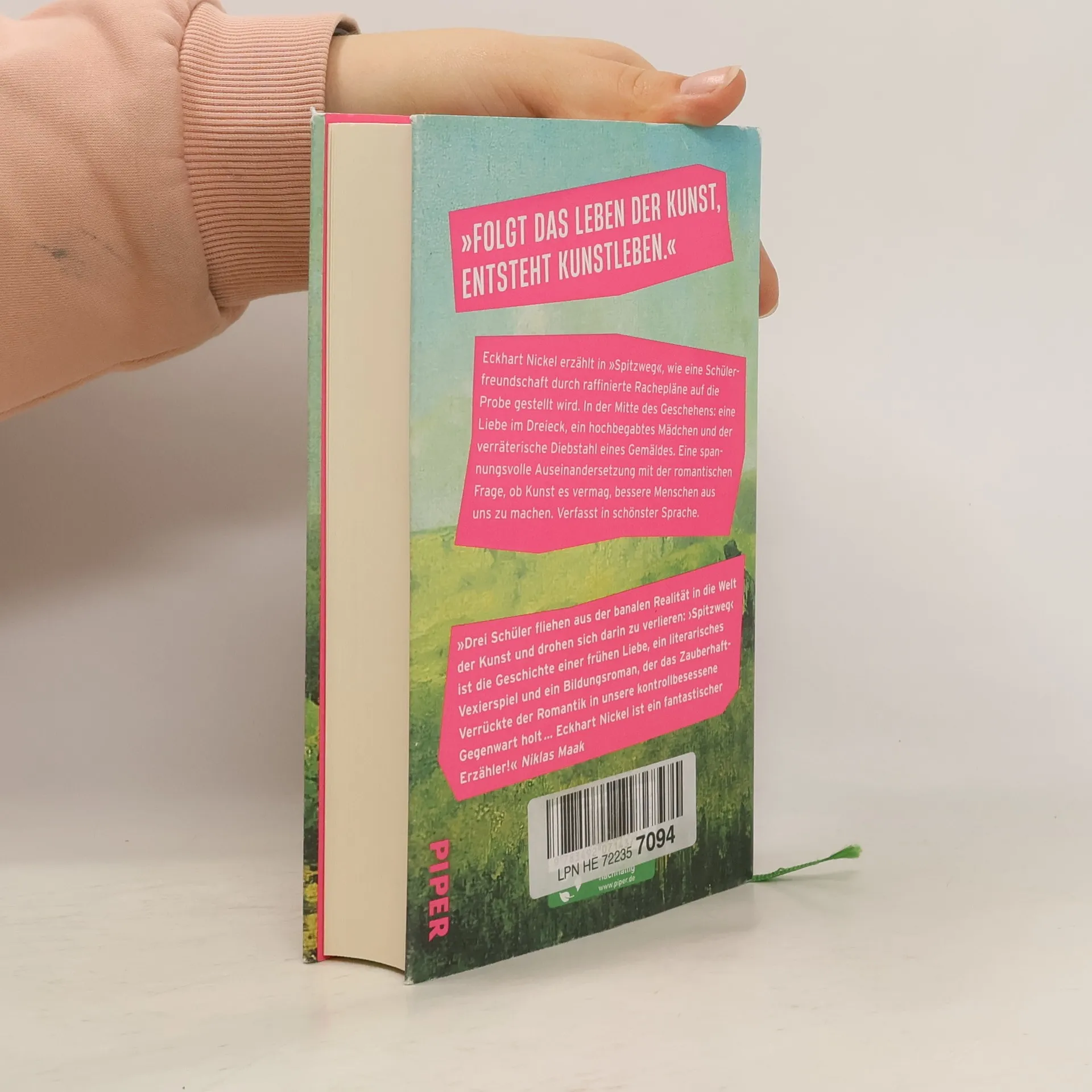 Ein Kunstdiebstahl aus Liebe - Nominiert für den Deutschen Buchpreis 2022 | Shortlist »Ich habe mir nie viel aus Kunst gemacht.« Als zufriedener Kunstbanause offenbart sich der Erzähler zu Beginn und berichtet davon, wie Carl, bewunderter Freund, ihn mit seiner Spitzweg-Begeisterung vom Gegenteil überzeugt. In der Mitte des Geschehens: eine Dreiecksbeziehung, ein hochbegabtes Mädchen und der verräterische Diebstahl eines Gemäldes. Durch raffinierte Rachepläne wird die Schülerfreundschaft auf ihre schwerste Probe gestellt. Eckhart Nickel erzählt wie in »Hysteria« die Geschichte einer Obsession: War darin von der Natur nur noch künstliche Reproduktion übrig, wird nun die Kunst zur zweiten Natur des Menschen. Eine raffinierte Kritik an der Bildvergötterung der sozial verwahrlosten Digitalgesellschaft und ihrer allmächtigen Instagrammatik. »Drei Schüler fliehen aus der banalen Realität in die Welt der Kunst und drohen sich darin zu verlieren: ›Spitzweg‹ ist die Geschichte einer frühen Liebe, ein literarisches Vexierspiel und ein Bildungsroman, der das Zauberhaft-Verrückte der Romantik in unsere kontrollbesessene Gegenwart holt ... Eckhart Nickel ist ein fantastischer Erzähler! « Niklas Maak