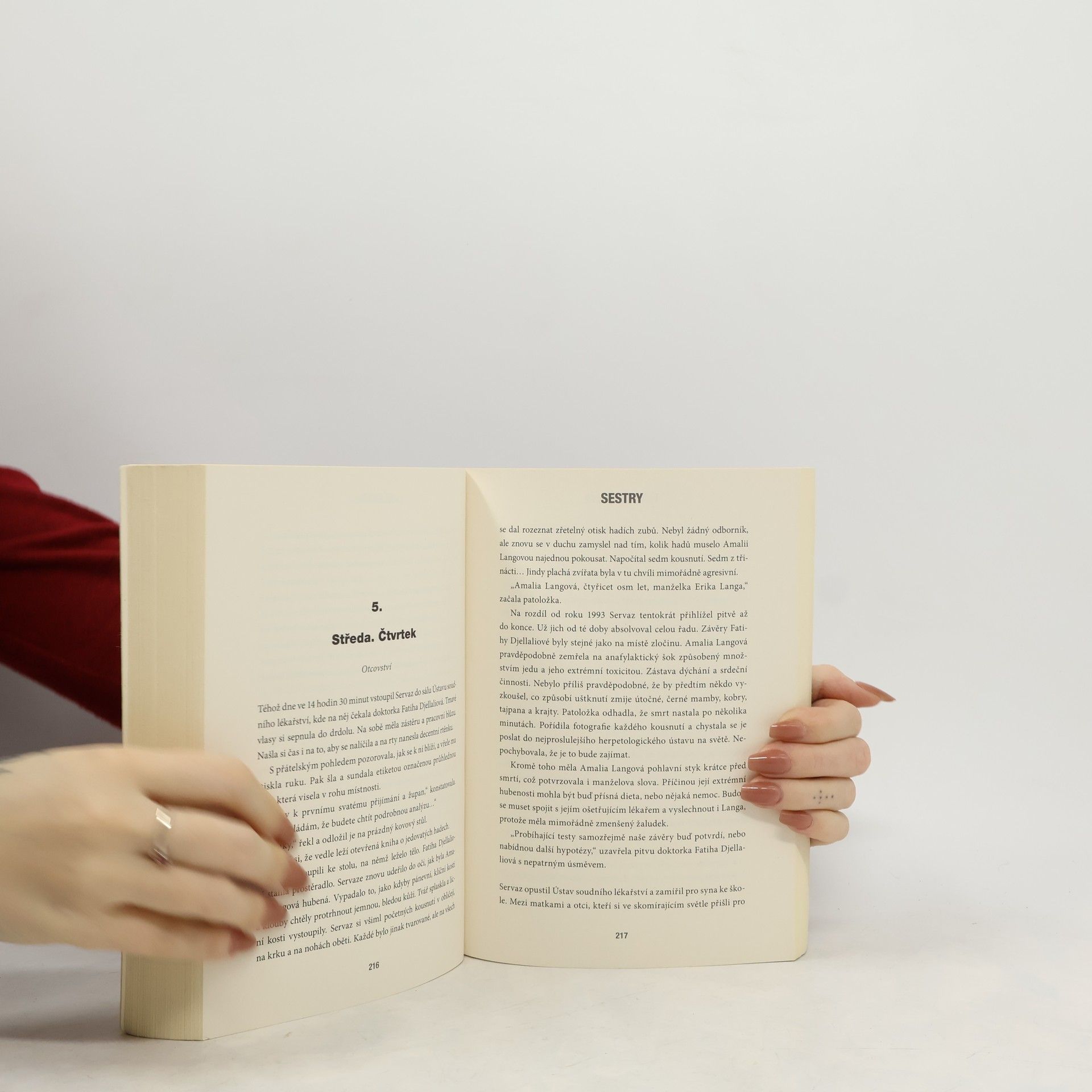 Další případ detektiva Servaze, který tentokrát řeší otřesný případ vraždy dvou sester oblečených v šatech k prvnímu svatému přijímání. Na ostrově řeky Garonne jsou nalezena těla dvou sester. Na první pohled jde o velmi podivný případ. Jednak jsou obě oblečeny do bílých šatů k prvnímu svatému přijímání, jednak první z nich před smrtí čelila surovému násilí, zatímco druhá nikoli. Pro detektiva Servaze jsou důležitou indicií knihy známého spisovatele Erika Langa, který se vyžívá v popisech krutého násilí. Objeví také zvláštně znepokojivé dopisy, které si sestry psaly s neznámým mužem. Podezření padá na Erika Langa, ale důkazů je málo...