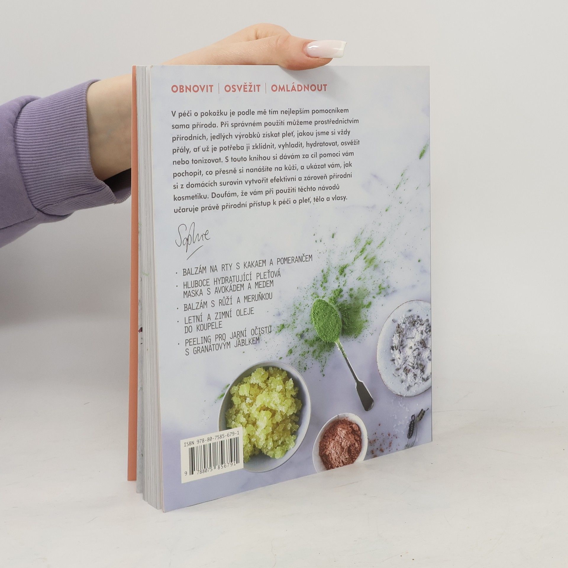 Balzámy, masky a peelingy. V péči o pokožku je podle mě tím nejlepším pomocníkem sama příroda. Při správném použití můžeme prostřednictvím přírodních, jedlých výrobků získat pleť, jakou jsme si vždy přáli, ať už je potřeba ji zklidnit, vyhladit, hydratovat, osvěžit nebo tonizovat. S touto knihou si dávám za cíl pomoci vám pochopit, co přesně si nanášíte na kůži, a ukázat vám, jak si z domácích surovin vytvořit efektivní a zároveň přírodní kosmetiku. Doufám, že vám při použití těchto návodů učaruje právě přírodní přístup k péči o pleť, tělo a vlasy.