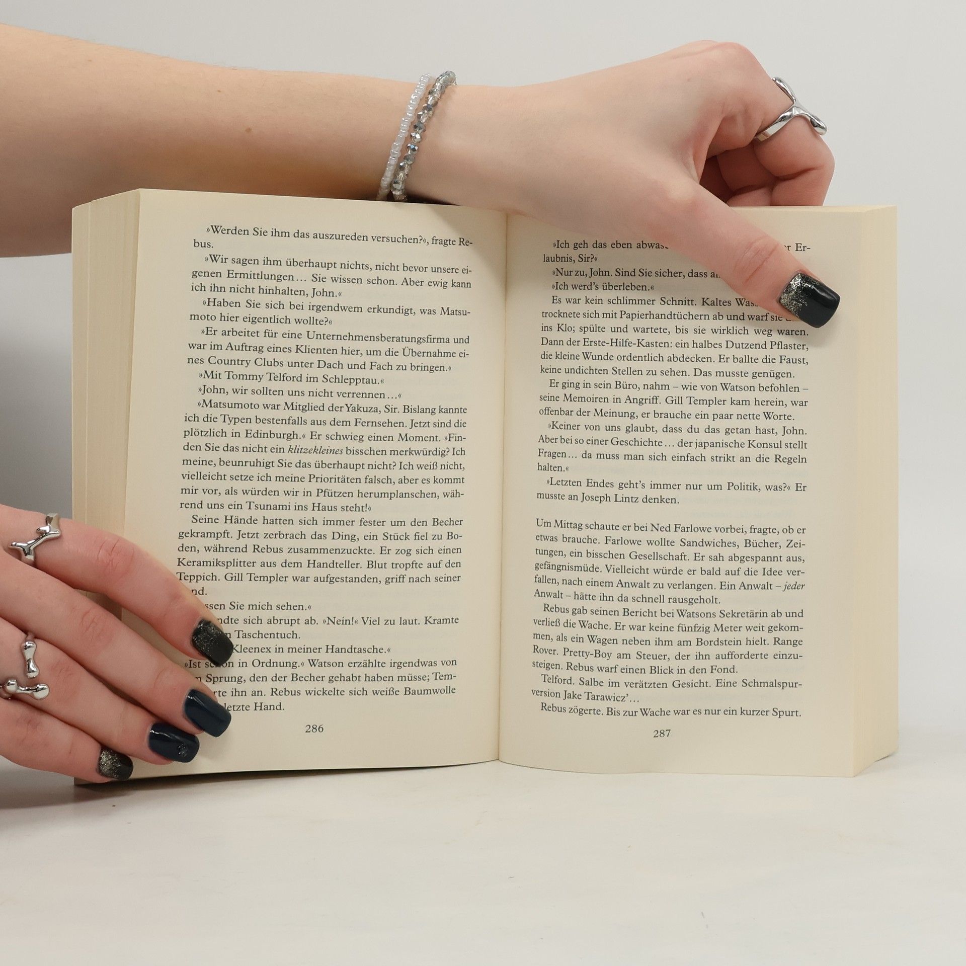 Es sind zwei Fälle, die scheinbar nichts miteinander zu tun haben: Ein alter Mann wird eines Naziverbrechens bezichtigt, leugnet aber vehement jede Schuld. Und die zur Prostitution gezwungene Candice weigert sich, die Namen ihrer Zuhälter preiszugeben. Noch bevor Rebus erste Beweise sammeln kann, überschlagen sich die Ereignisse: der alte Mann wird erhängt aufgefunden, Candice entführt und Rebus Tochter Sammy liegt nach einem offenbar gezielt verursachten Unfall im Koma. Die Fäden scheinen beim Unterweltneuling Tommy Telford zusammenzulaufen – und Rebus sinnt auf persönliche Rache an dem Fahrer des Unfallwagens …