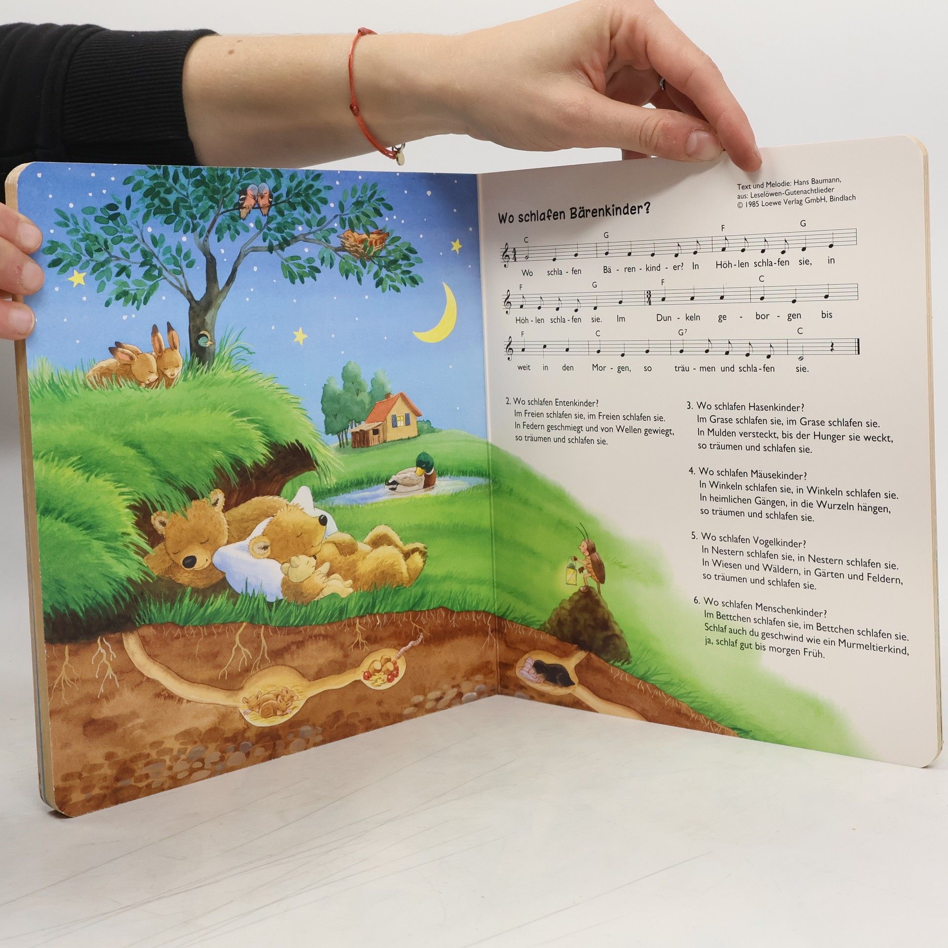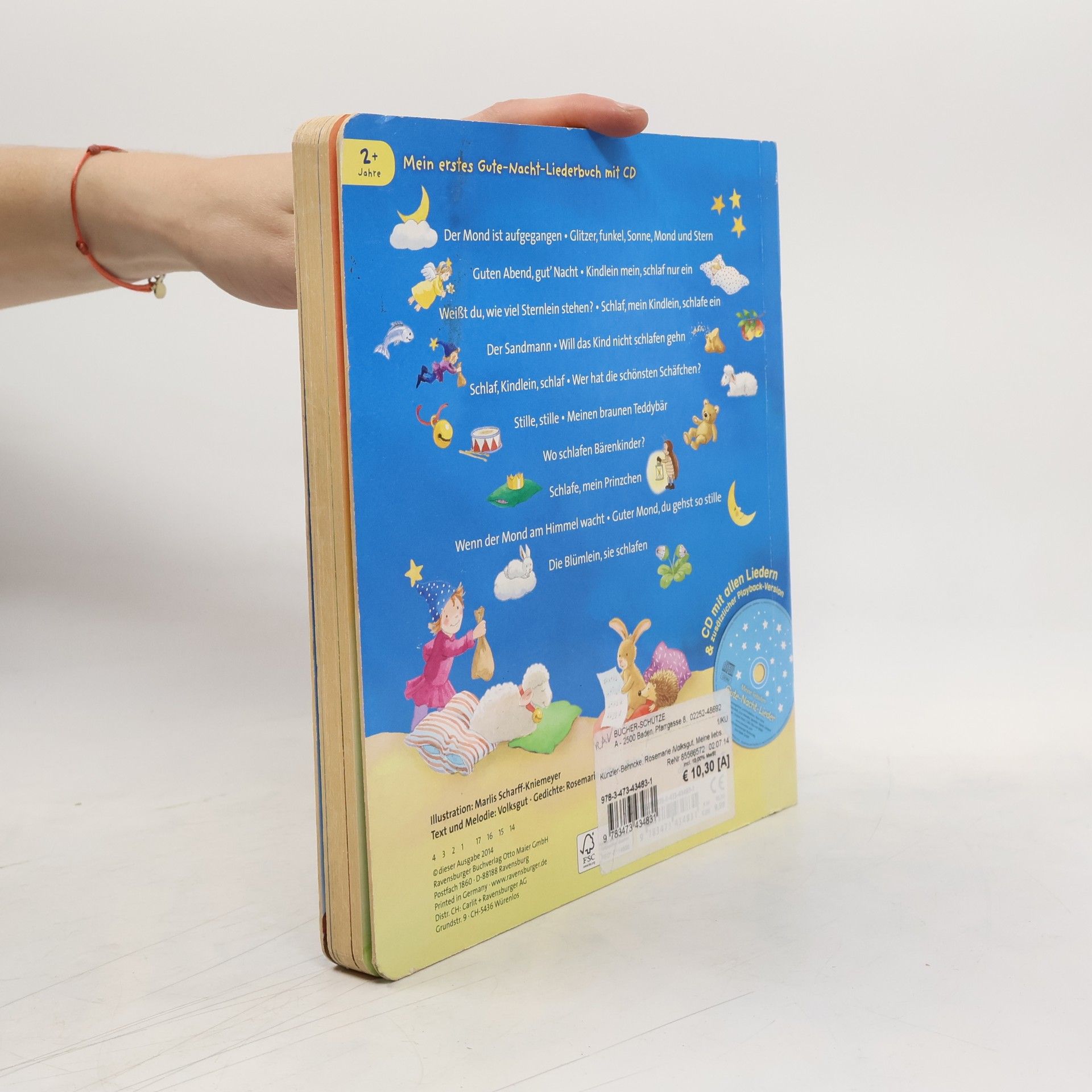 Inhalt der CD: 1) Der Mond ist aufgegangen (2:12); 2) Glitzer, Funkel, Sonne, Mond und Stern (0:59); 3) Guten Abend, gut' Nacht (1:40); 4) Kindlein mein, schlaf nur ein (1:24); 5) Weißt du, wie viel Sternlein stehen? (2:02); 6) Schlaf, mein Kindchen, schlafe ein (0:36); 7) Der Sandmann ist da (1:05); 8) Will das Kind nicht schlafen gehn (0:22); 9) Schlaf, Kindlein, schlaf (2:19); 10) Wer hat die schönsten Schäfchen? (1:54); 11) Stille, stille (1:39); 12) Meinen braunen Teddybär (0:44); 13) Wo schlafen Bärenkinder? (2:45); 14)Schlafe, mein Prinzchen, schlaf ein (2:45); 15) Wenn der Mond am Himmel wacht (0:52); 16) Guter Mond, du gehst so stille (2:33); 17) Die Blümelein, sie schlafen (2:36); 18) Der Mond ist aufgegangen - Playback (2:12); 19) Glitzer, Funkel, Sonne, Mond und Stern - Playback (0:59); 20) Guten Abend, gut' Nacht - Playback (1:40); 21) Kindlein mein, schlaf nur ein - Playback (1:24); 22) Weißt du, wie viel Sternlein stehen? - Playback (2:02); 23) Der Sandmann ist da - Playback (1:05); 24) Schlaf, Kindlein, schlaf - Playback (2:19); 25) Wer hat die schönsten Schäfchen? - Playback (1:54); 26) Stille, stille - Playback (1:39); 27) Wo schlafen Bärenkinder? - Playback (2:45); 28) Schlafe, mein Prinzchen, schlaf ein - Playback (2:45); 29) Guter Mond, du gehst so stille - Playback (2:33); 30) Die Blümelein, sie schlafen - Playback (2:34); Gesamt-Spieldauer der CD: ca. 50 Minuten. Arrangement und Produktion: Novo Sonic; Gesang: Ariane Roth, Ecce Meineke; Sprecher: Martin Umbach; Klavier: Christof Kosel; Cello: Elisa von Wallis.