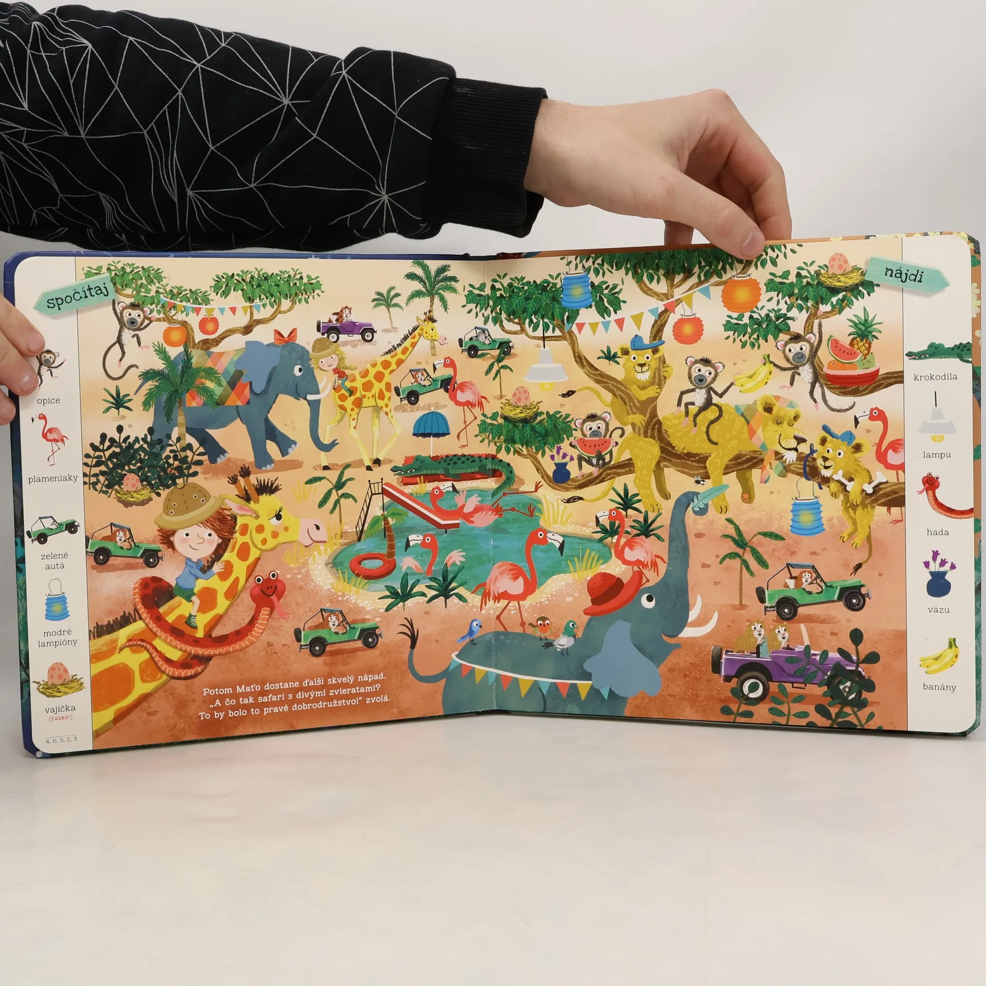 Katka a Maťko bývajú na rovnakej ulici a radi sa spolu hrávajú v parku. Vo fantázii však vyrážajú ďaleko za jeho hranice.Svet je plný vecí, ktoré len čakajú na to, aby sme ich objavili. Pridaj sa k nim a zisti, ako sa žije na safari, na divokom západe či na neznámej planéte medzi ufónmi. Na každej stránke nájdeš zoznam vecí, ktoré môžeš na obrázku nájsť a spočítať.