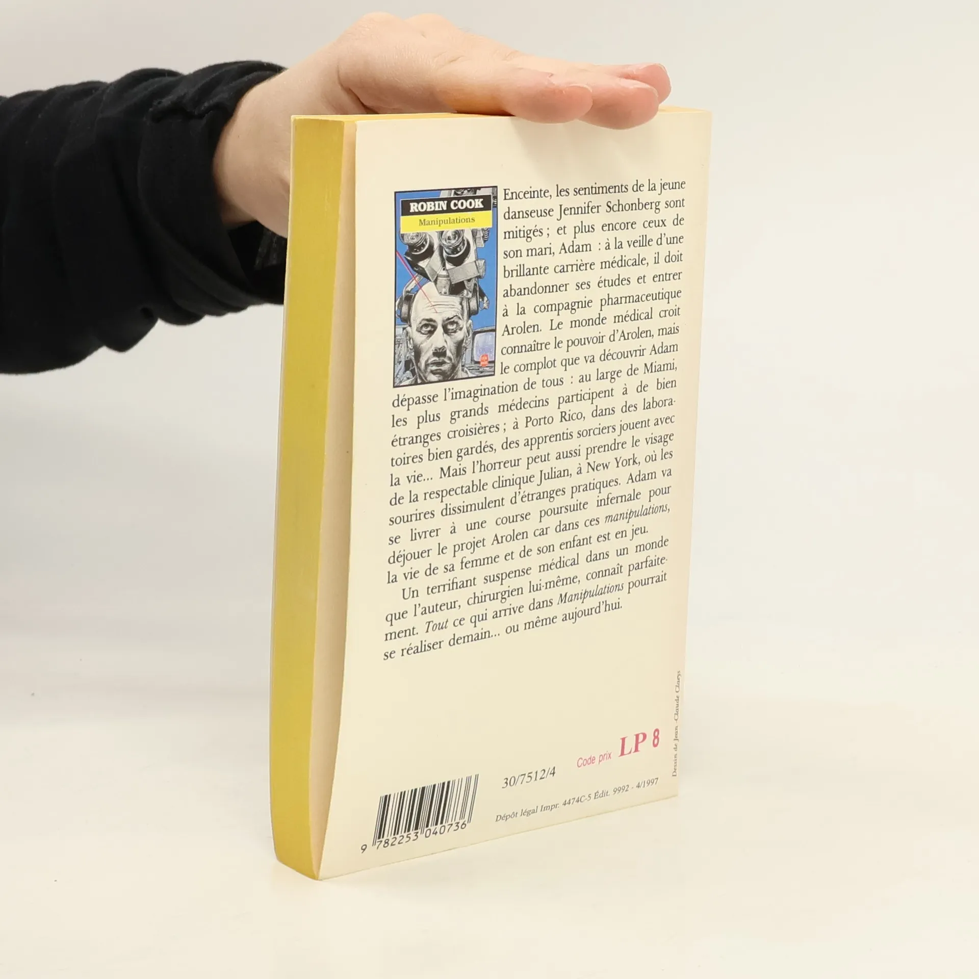 Enceinte, les sentiments de la jeune danseuse Jennifer Schonberg sont mitigés ; et plus encore ceux de son mari, Adam : à la veille d'une brillante carrière médicale, il doit abandonner ses études et entrer à la compagnie pharmaceutique Arolen. Le monde médical croit connaître le pouvoir d'Arolen, mais le complot que va découvrir Adam dépasse l'imagination de tous : au large de Miami, les plus grands médecins participent à de bien étranges croisières; à Porto Rico, dans des laboratoires bien gardés, des apprentis sorciers jouent avec la vie... Mais l'horreur peut aussi prendre le visage de la respectable clinique Julian, à New York, où les sourires dissimulent d'étranges pratiques. Adam va se livrer à une course poursuite infernale pour déjouer le projet Arolen car dans ces manipulations, la vie de sa femme et de son enfant est en jeu. Un terrifiant suspense médical dans un monde que l'auteur, chirurgien lui-même, connait parfaitement. Tout ce qui arrive dans Manipulations pourrait se réaliser demain... ou même aujourd'hui.