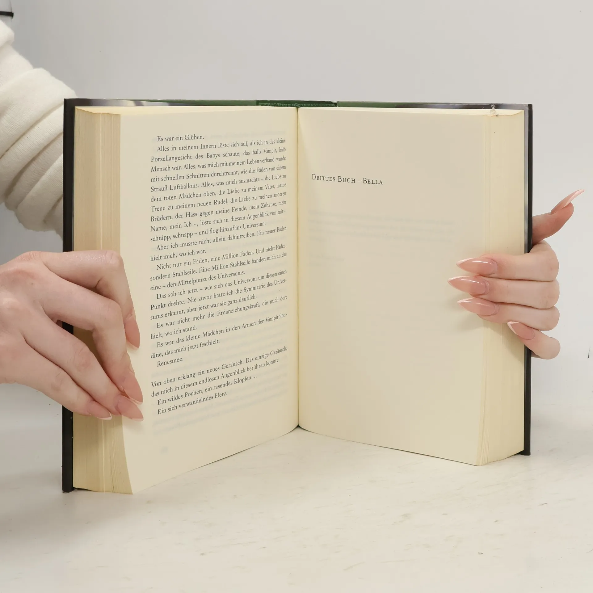 Wenn man von dem getötet wird, den man liebt, hat man keine Wahl. Wie kann man fliehen, wie kämpfen, wenn man damit dem Geliebten wehtun würde? Wenn das eigene Leben das Einzige ist, was man dem Geliebten geben kann, wie kann man es ihm dann verweigern? Wenn es jemand ist, den man wirklich liebt? Ein Jahr voller Glück, aber auch voller Schmerz liegt hinter Bella. Ein Jahr, in dem sie fast zerbrochen wäre, weil ihre Leidenschaft für Edward und ihre innige Freundschaft zu Jacob einfach unvereinbar sind. Aber nun ist ihre Entscheidung gefallen. Unwiderruflich, auch wenn es so aussieht, als setze sie eine Entwicklung in Gang, die möglicherweise verheerend für sie alle ist. Noch hofft Bella, die verschieden Fäden ihres Lebens wieder zusammenführen zu können, da droht alles für immer zerstört zu werden ...  „Ungewöhnlich suggestiv und intelligent erzählt“ (Süddeutsche Zeitung) „Die Frau, die uns den Schlaf raubt“ (Brigitte)