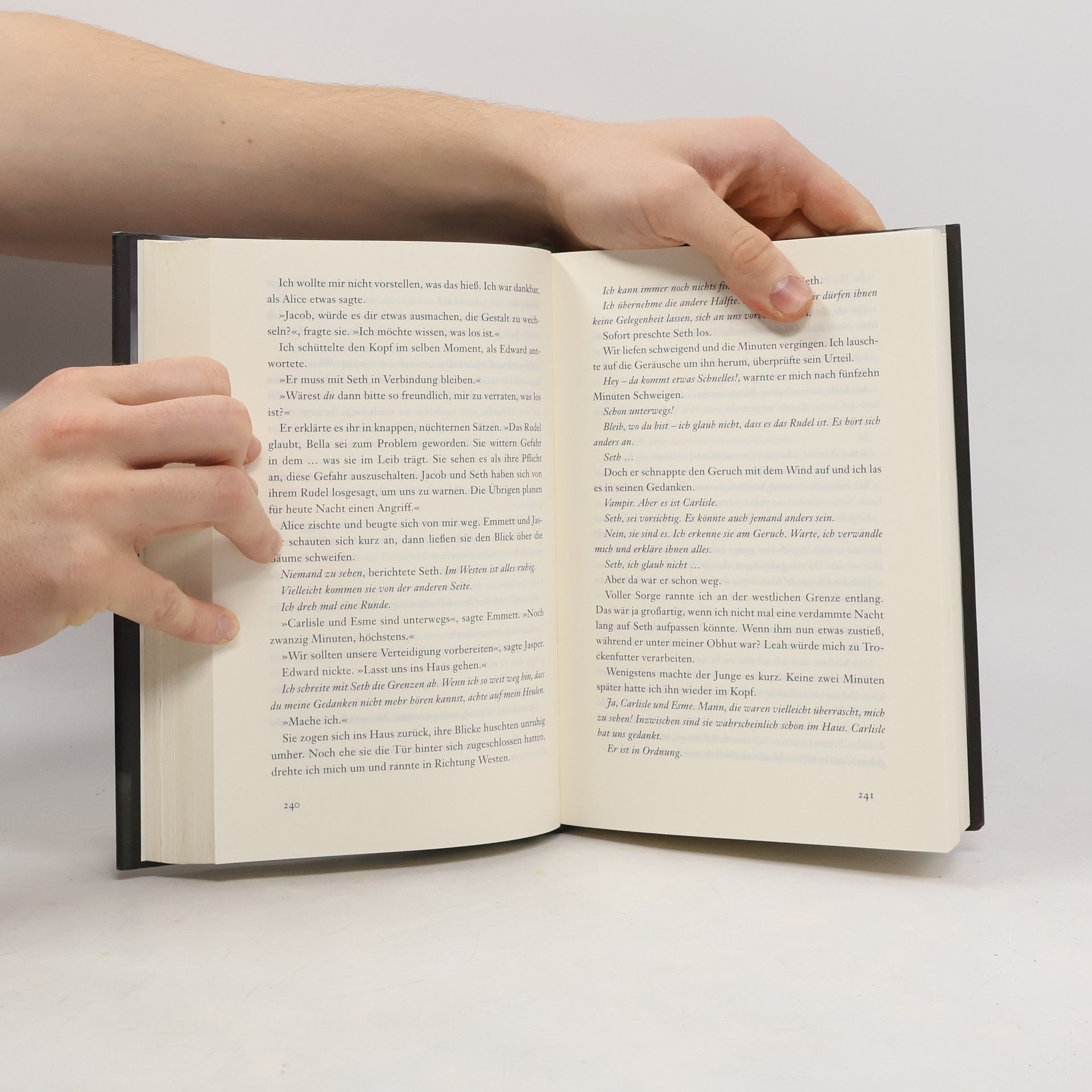 Wenn man von dem getötet wird, den man liebt, hat man keine Wahl. Wie kann man fliehen, wie kämpfen, wenn man damit dem Geliebten wehtun würde? Wenn das eigene Leben das Einzige ist, was man dem Geliebten geben kann, wie kann man es ihm dann verweigern? Wenn es jemand ist, den man wirklich liebt? Ein Jahr voller Glück, aber auch voller Schmerz liegt hinter Bella. Ein Jahr, in dem sie fast zerbrochen wäre, weil ihre Leidenschaft für Edward und ihre innige Freundschaft zu Jacob einfach unvereinbar sind. Aber nun ist ihre Entscheidung gefallen. Unwiderruflich, auch wenn es so aussieht, als setze sie eine Entwicklung in Gang, die möglicherweise verheerend für sie alle ist. Noch hofft Bella, die verschieden Fäden ihres Lebens wieder zusammenführen zu können, da droht alles für immer zerstört zu werden ...  „Ungewöhnlich suggestiv und intelligent erzählt“ (Süddeutsche Zeitung) „Die Frau, die uns den Schlaf raubt“ (Brigitte)