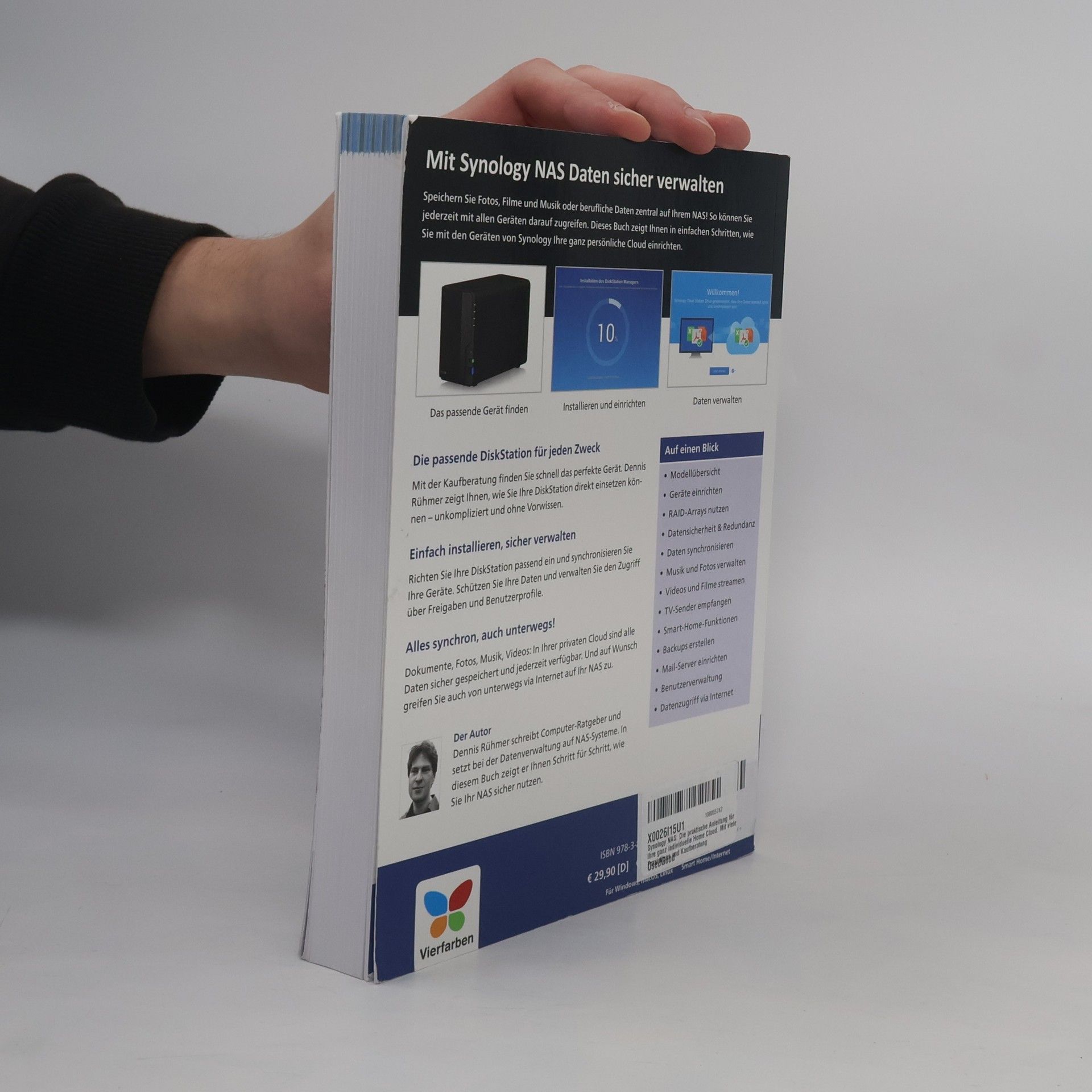 Möchten Sie das volle Potenzial Ihres Synology NAS ausschöpfen? Dieses Buch von Dennis Rühmer ist der ideale Ratgeber für Sie. Der Autor erklärt, wie Sie Ihr NAS optimal konfigurieren und Ihre eigene Cloud aufbauen. So können Sie Ihre Daten sicher speichern und verwalten, Medien streamen, Live-TV aufnehmen und automatische Back-ups Ihrer Geräte erstellen. Sie lernen die Software DiskStation Manager (DSM 7.0) umfassend kennen. Von der Kaufberatung über grundlegende Konzepte wie Raid-Level bis hin zu den vielfältigen Diensten erfahren Sie alles, was Sie über Ihr NAS wissen müssen. Der Inhalt umfasst: - Auswahl des richtigen Geräts - Geeignete Festplatten finden - Daten besser schützen - Erstmalige Einrichtung und Inbetriebnahme - System kennenlernen - Netzwerkfreigaben im Heimnetz einrichten - Kalender und Adressbuch verwalten - Sicherer Zugriff auf Dateien von außen - Musik mit der Audio Station abspielen - Fotos mit Moments organisieren und teilen - Videos mit der Video Station genießen - Zentrales Back-up erstellen - Druckerserver für zentrale Drucker - Eigene Webseite erstellen - VPN-Verbindungen einrichten - Smart Home mit Kameraüberwachung - Zentrale TV-Server mit Tvheadend - Schritt für Schritt mehr Sicherheit im Heimnetz Die Fachpresse lobt die Vorauflage als informativen Leitfaden für den praktischen Umgang mit Netzwerkspeichern, der sowohl Einsteigern als auch Enthusiasten gerecht wird.