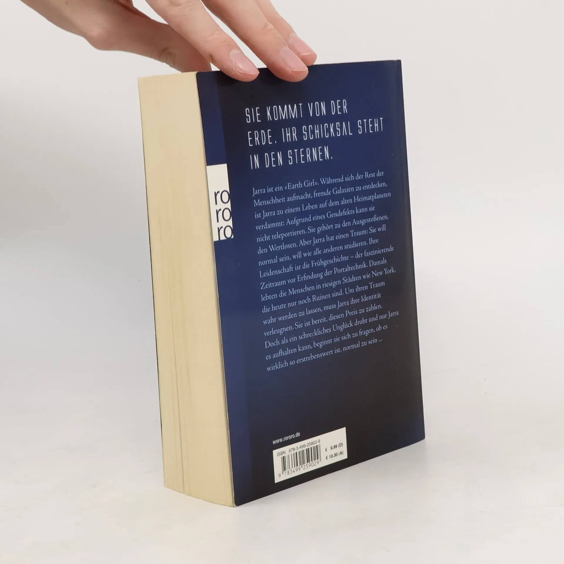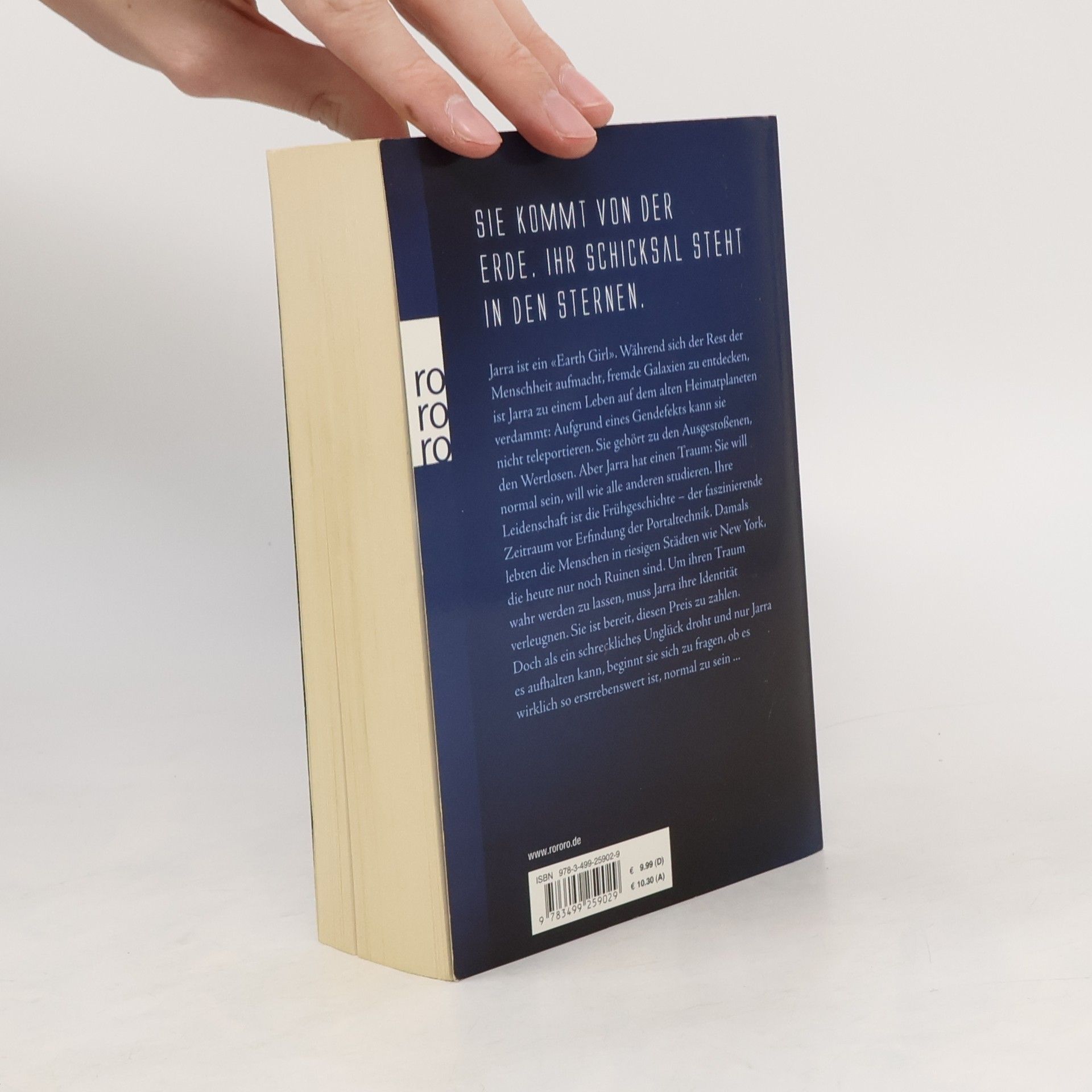 Sie kommt von der Erde. Ihr Schicksal steht in den Sternen. Jarra ist ein «Earth Girl». Während sich der Rest der Menschheit aufmacht, fremde Galaxien zu entdecken, ist Jarra zu einem Leben auf dem alten Heimatplaneten verdammt: Aufgrund eines Gendefekts kann sie nicht teleportieren. Sie gehört zu den Ausgestoßenen, den Wertlosen. Aber Jarra hat einen Traum: Sie will normal sein, will wie alle anderen studieren. Ihre Leidenschaft ist die Frühgeschichte – der faszinierende Zeitraum vor Erfindung der Portaltechnik. Damals lebten die Menschen in riesigen Städten wie New York, die heute nur noch Ruinen sind. Um ihren Traum wahr werden zu lassen, muss Jarra ihre Identität verleugnen. Sie ist bereit, diesen Preis zu zahlen. Doch als ein schreckliches Unglück droht und nur Jarra es aufhalten kann, beginnt sie sich zu fragen, ob es wirklich so erstrebenswert ist, normal zu sein ...