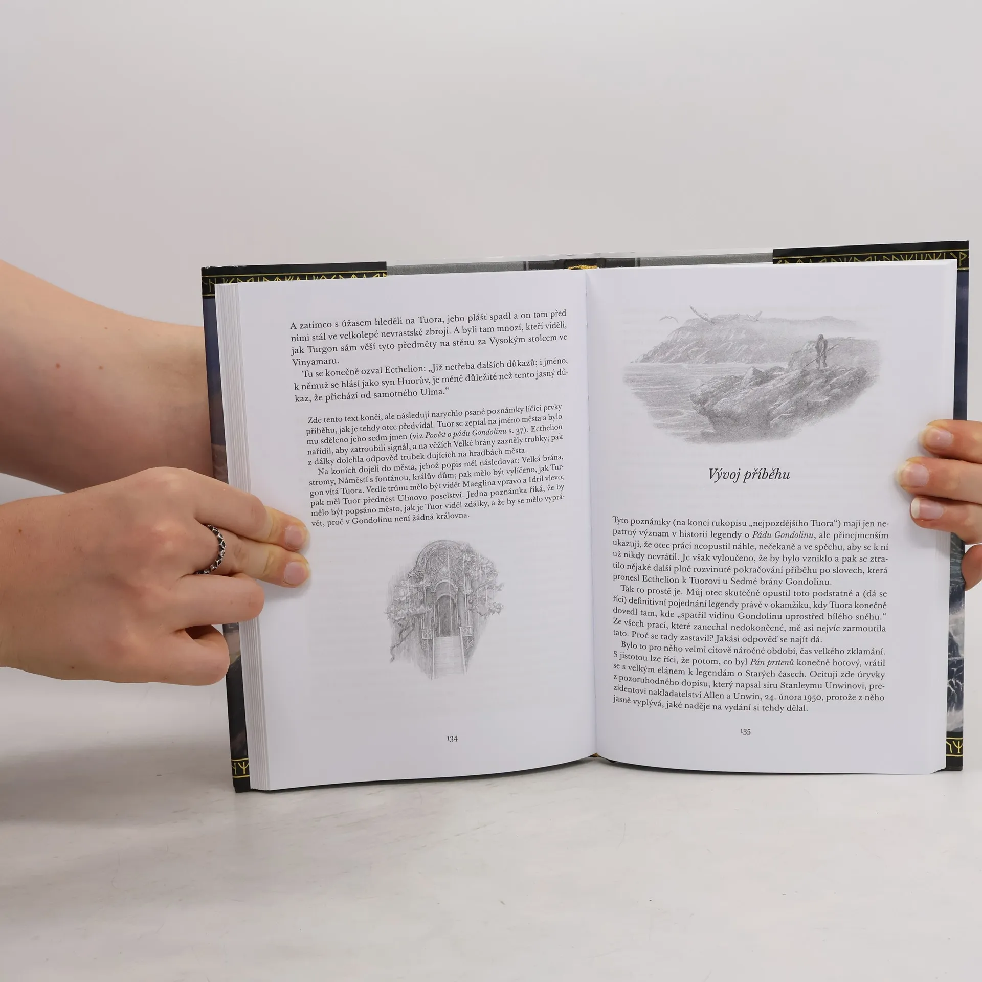 Čtenáři Hobita a Pána prstenů vědí, že J. R. R. Tolkien zasadil tyto příběhy do propracovaného světa, jehož kořeny sahají do mnohem hlubší minulosti. Některé příběhy z dávnověku jeho světa známe zdíky úsilí Christophera Tolkiena, který otcovy příběhy rekonstruuje z rukopisných verzí. Po Silmarillionu, Nedokončených příbězích a Húrinových dětech tak nyní přichází Pád Gondolinu, pojedávající o boji dvou nesmiřitelných mocností: Morgotha, který je vtělením zla, a Ulma, Pána vod, který je druhým nejmocnějším z božských Valar. Morgoth usiluje o zničení města Gondolin, jež vystavěli Noldor, elfové, kteří se vzepřeli bohům a opustili bájný Valinor. Jeho úhlavním nepřítelem je Turgon, vládce Gondolinu, ukrytého před Morghothem mocí kouzel. Ulmo své záměry prosazuje skrze Tuora, kterého dovede do Gondolinu, kde Tuor dosáhne výnamného postavení, ožení se s Turgonovou dcerou a zplodí s ní syna Eärendila. Když se v Gondolinu najde zrádce a Morgoth město najde a zničí, Tuorovi i s rodinou se podaří uprchnout; jeho potomkové pak účinkují v pozdějších obdobích tolkienovské mytologie - například jeho vnuk Elrond, kterého známe z bojů o Prsten.