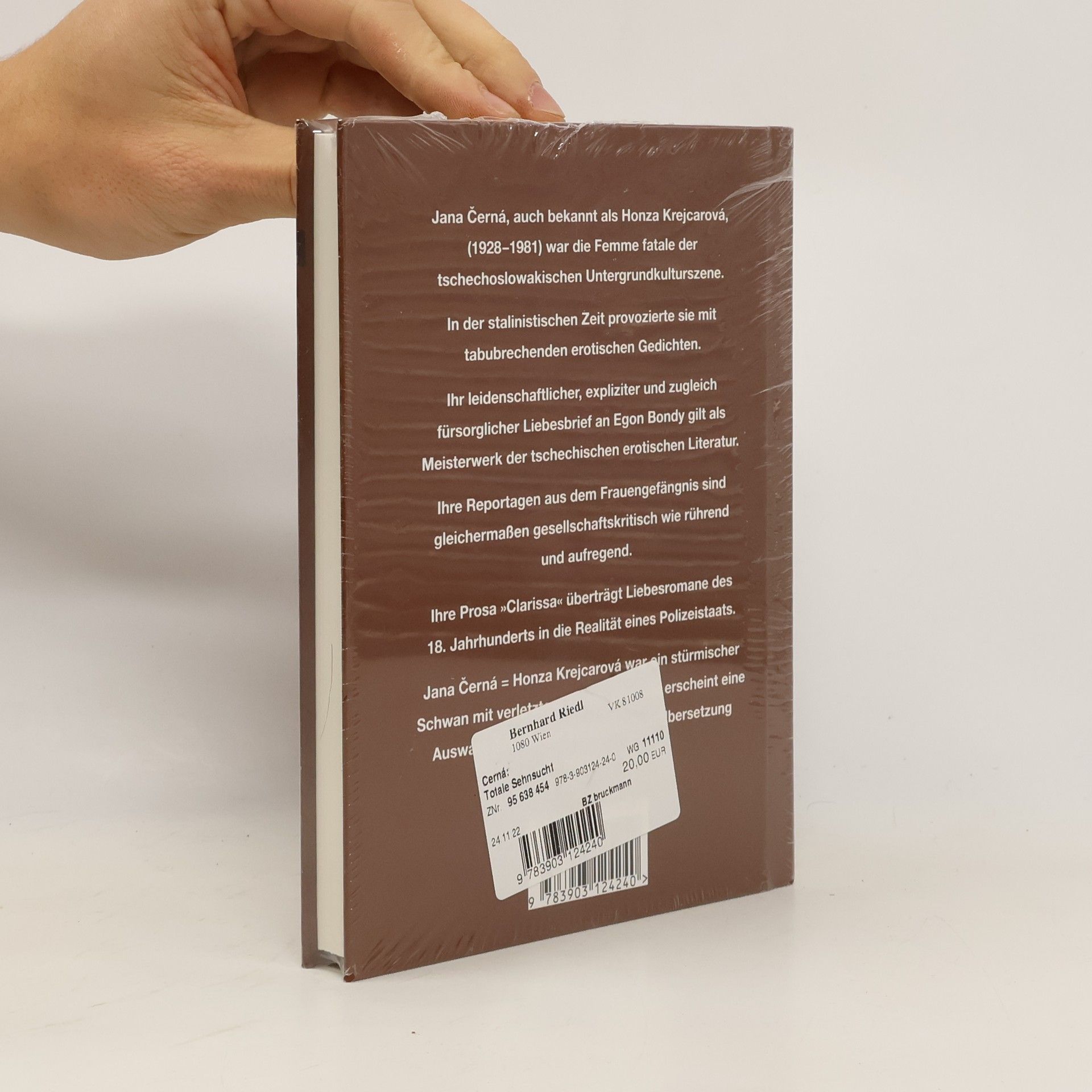 Jana Černá = Honza Krejcarová war die Femme fatale der Untergrund-Szene in der kommunistischen Tschechoslowakei. In der gefährlichen Zeit des Stalinismus provozierte sie mit beinhart erotischen Gedichten. Später zeichneten sich ihre Werke durch einen feinfühlig analytischen Blick aus. Sie bewegte sich in der Gruppe um Egon Bondy und Ivo Vodseďálek, die zuerst vom Surrealismus inspiriert war und später einen eigenen Stil, den Totalen Realismus, einführte, um den zur Staatskunst erhobenen Sozialistischen Realismus ad absurdum zu führen. Erstmals erscheint eine Auswahl von Jana Černás Werken auf Deutsch. Der von Martina Lisa übersetzte Band Totale Sehnsucht beginnt mit dem Liebesbrief an Egon Bondy, der in Tschechien als absolutes Meisterwerk der erotischen Liebesliteratur gilt. Es folgen Gedichte und die psychoanalytische, von der Liebesliteratur des 18. Jahrhunderts inspirierte Prosa Clarissa. Abgeschlossen wird der Band durch eine Reportage aus dem Frauengefängnis, in dem Jana Černá ein Jahr ihres Lebens verbracht hat. Diese Reportage ist schon deshalb beeindruckend, weil die Autorin sich selbst ganz auszusparen scheint – sich aber in den anderen inhaftierten Frauen spiegelt. Mörderinnen kommen auf ebenso rührende Weise zu Wort wie zu Unrecht Verurteilte. Jana Černá war ein Phänomen: Wegen ihres wilden Lebens war sie nicht unbedingt ein Vorbild, aber wie es scheint, haben sie alle Künstler des Untergrunds bewundert und geliebt.