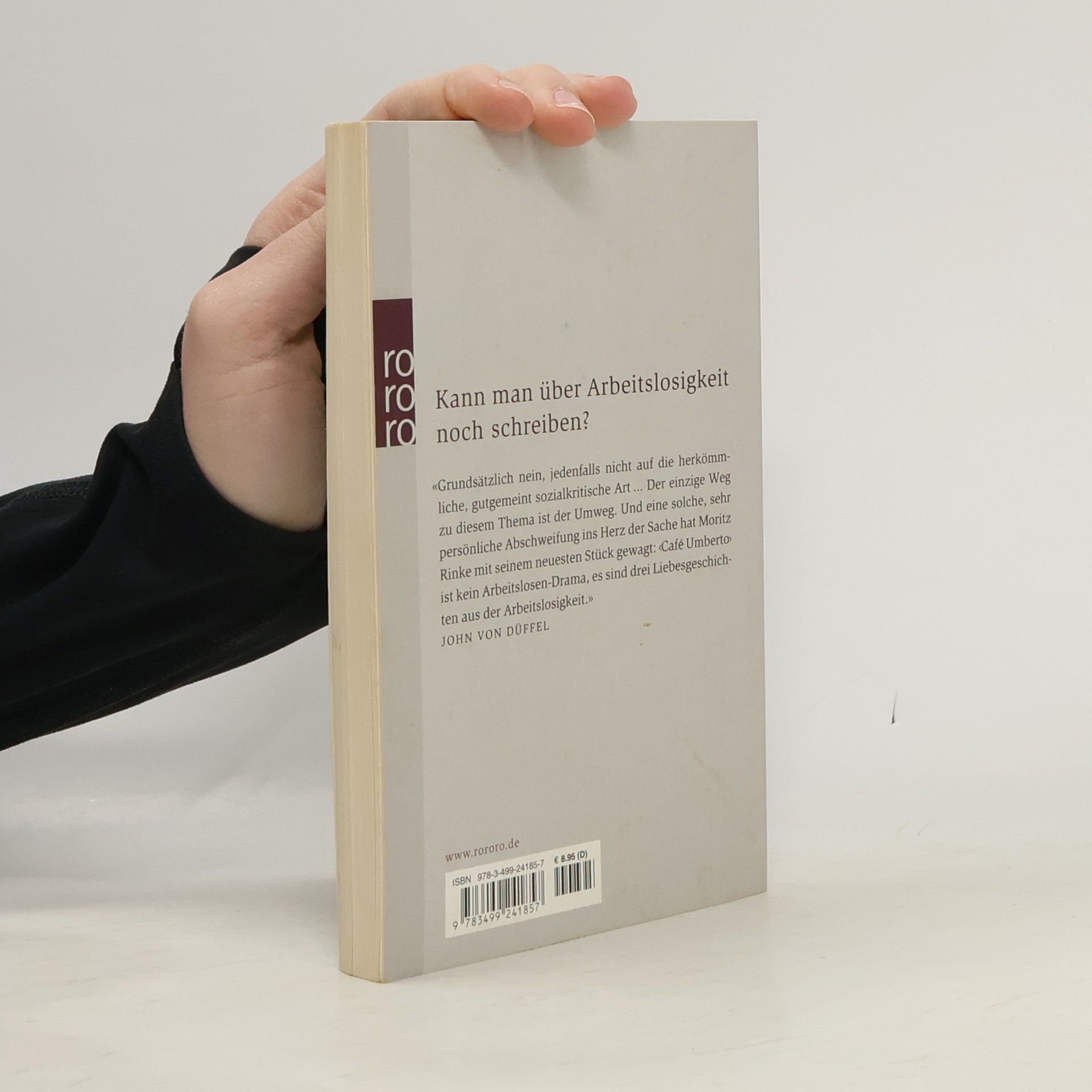 Kann man über Arbeitslosigkeit noch schreiben? Grundsätzlich nein, jedenfalls nicht auf die herkömmliche, gutgemeint sozialkritische Art ... Der einzige Weg zu diesem Thema ist der Umweg. Und eine solche, sehr persönliche Abschweifung ins Herz der Sache hat Moritz Rinke mit seinem neuesten Stück gewagt: „Café Umberto“ ist kein Arbeitslosen-Drama, es sind drei Liebesgeschichten aus der Arbeitslosigkeit. (John von Düffel)