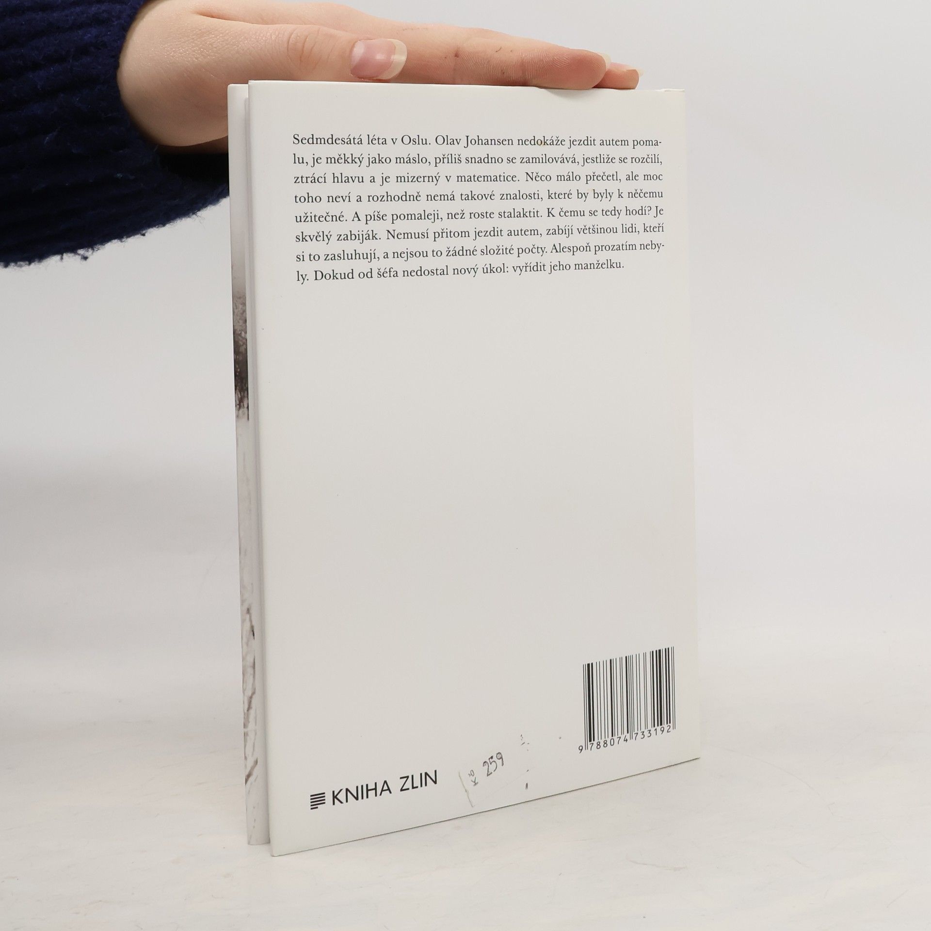 Sedmdesátá léta v Oslu. Olav Johansen nedokáže jezdit autem pomalu, je měkký jako máslo, příliš snadno se zamilovává, jestliže se rozčilí, ztrácí hlavu a je mizerný v matematice. Něco málo přečetl, ale moc toho neví a rozhodně nemá takové znalosti, které by byly k něčemu užitečné. A píše pomaleji, než roste stalaktit. K čemu se tedy hodí? Je skvělý zabiják. Nemusí přitom jezdit autem, zabíjí většinou lidi, kteří si to zasluhují, a nejsou to žádné složité počty. Alespoň prozatím nebyly. Dokud od šéfa nedostal nový úkol: vyřídit jeho manželku.