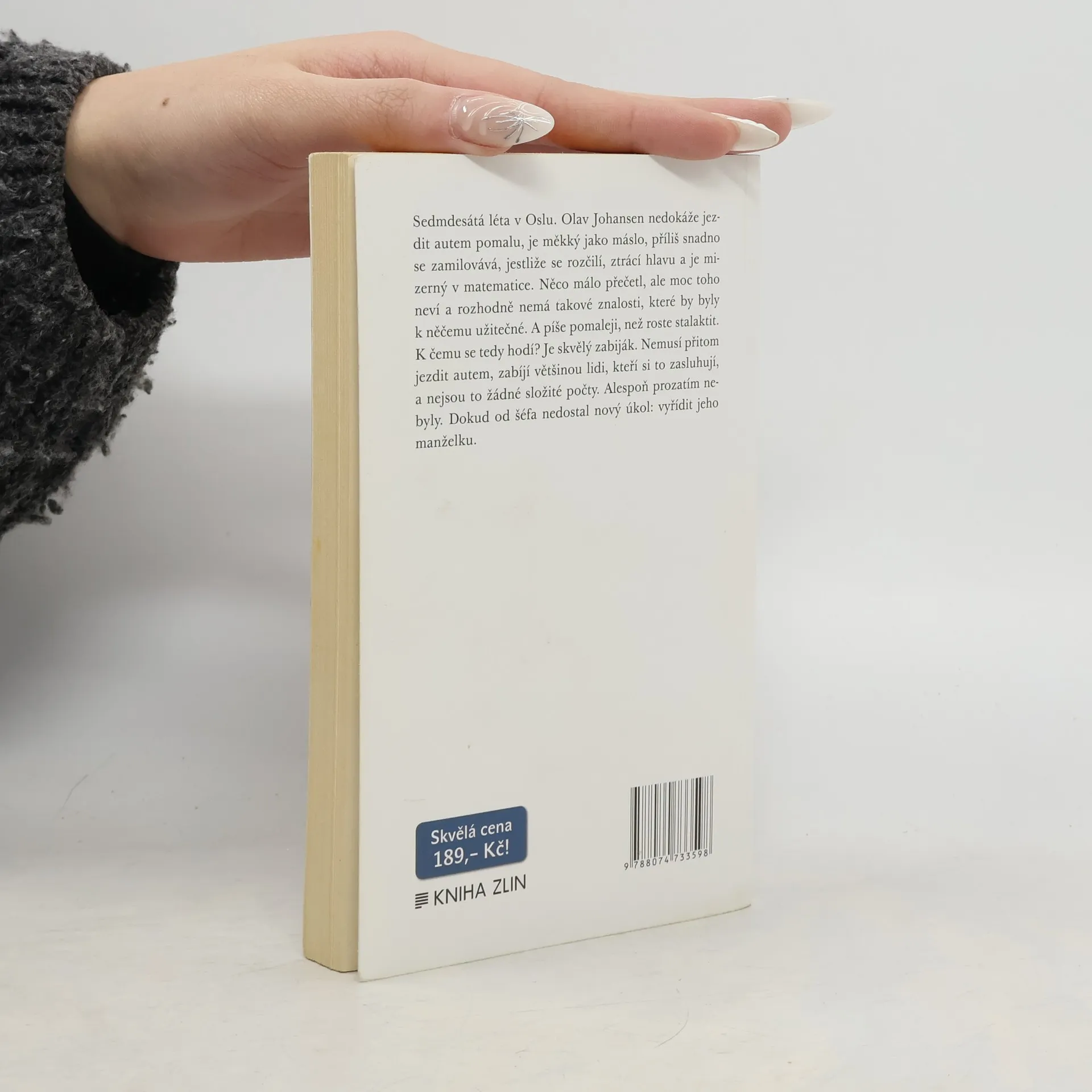 Sedmdesátá léta v Oslu. Olav Johansen nedokáže jezdit autem pomalu, je měkký jako máslo, příliš snadno se zamilovává, jestliže se rozčilí, ztrácí hlavu a je mizerný v matematice. Něco málo přečetl, ale moc toho neví a rozhodně nemá takové znalosti, které by byly k něčemu užitečné. A píše pomaleji, než roste stalaktit. K čemu se tedy hodí? Je skvělý zabiják. Nemusí přitom jezdit autem, zabíjí většinou lidi, kteří si to zasluhují, a nejsou to žádné složité počty. Alespoň prozatím nebyly. Dokud od šéfa nedostal nový úkol: vyřídit jeho manželku.