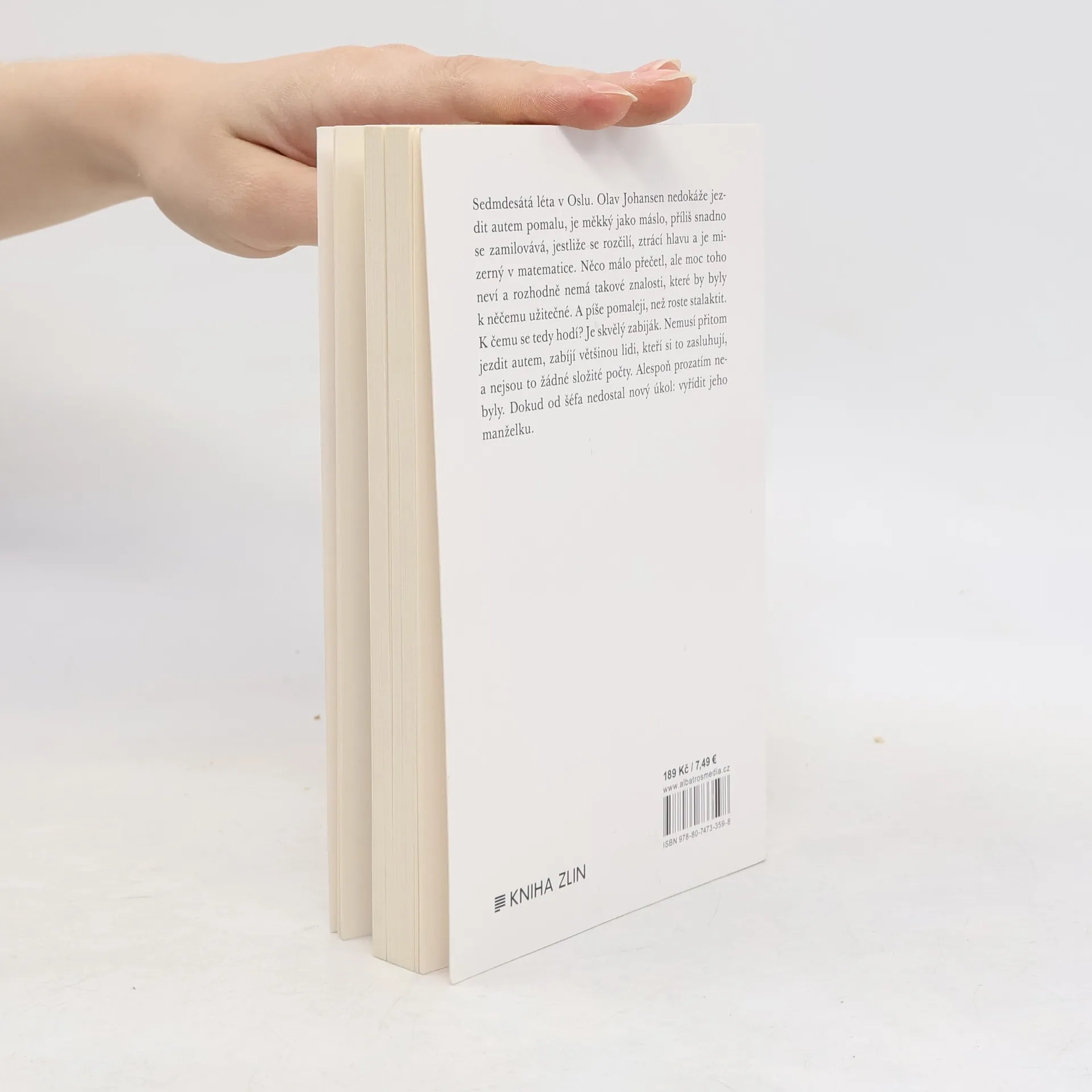 Sedmdesátá léta v Oslu. Olav Johansen nedokáže jezdit autem pomalu, je měkký jako máslo, příliš snadno se zamilovává, jestliže se rozčilí, ztrácí hlavu a je mizerný v matematice. Něco málo přečetl, ale moc toho neví a rozhodně nemá takové znalosti, které by byly k něčemu užitečné. A píše pomaleji, než roste stalaktit. K čemu se tedy hodí? Je skvělý zabiják. Nemusí přitom jezdit autem, zabíjí většinou lidi, kteří si to zasluhují, a nejsou to žádné složité počty. Alespoň prozatím nebyly. Dokud od šéfa nedostal nový úkol: vyřídit jeho manželku.