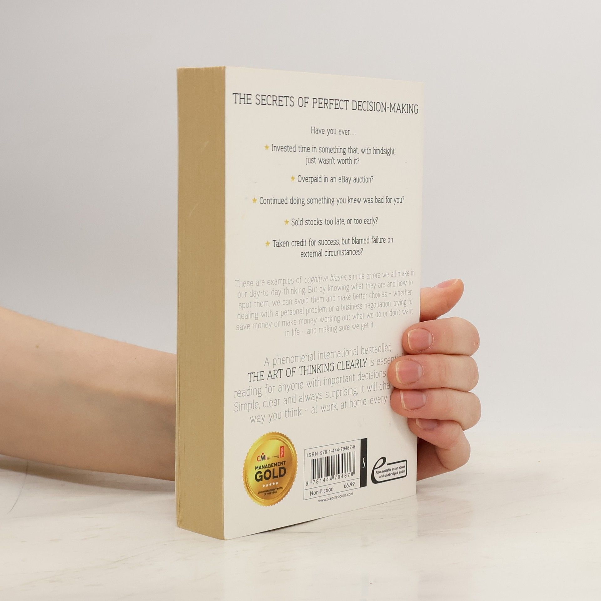 The Art of Thinking Clearly by world-class thinker and entrepreneur Rolf Dobelli is an eye-opening look at human psychology and reasoning - essential reading for anyone who wants to avoid "cognitive errors" and make better choices in all aspects of their lives. Have you ever: Invested time in something that, with hindsight, just wasn't worth it? Or continued doing something you knew was bad for you? These are examples of cognitive biases, simple errors we all make in our day-to-day thinking. But by knowing what they are and how to spot them, we can avoid them and make better decisions. Simple, clear, and always surprising, this indispensable book will change the way you think and transform your decision-making-work, at home, every day. It reveals, in 99 short chapters, the most common errors of judgment, and how to avoid them.