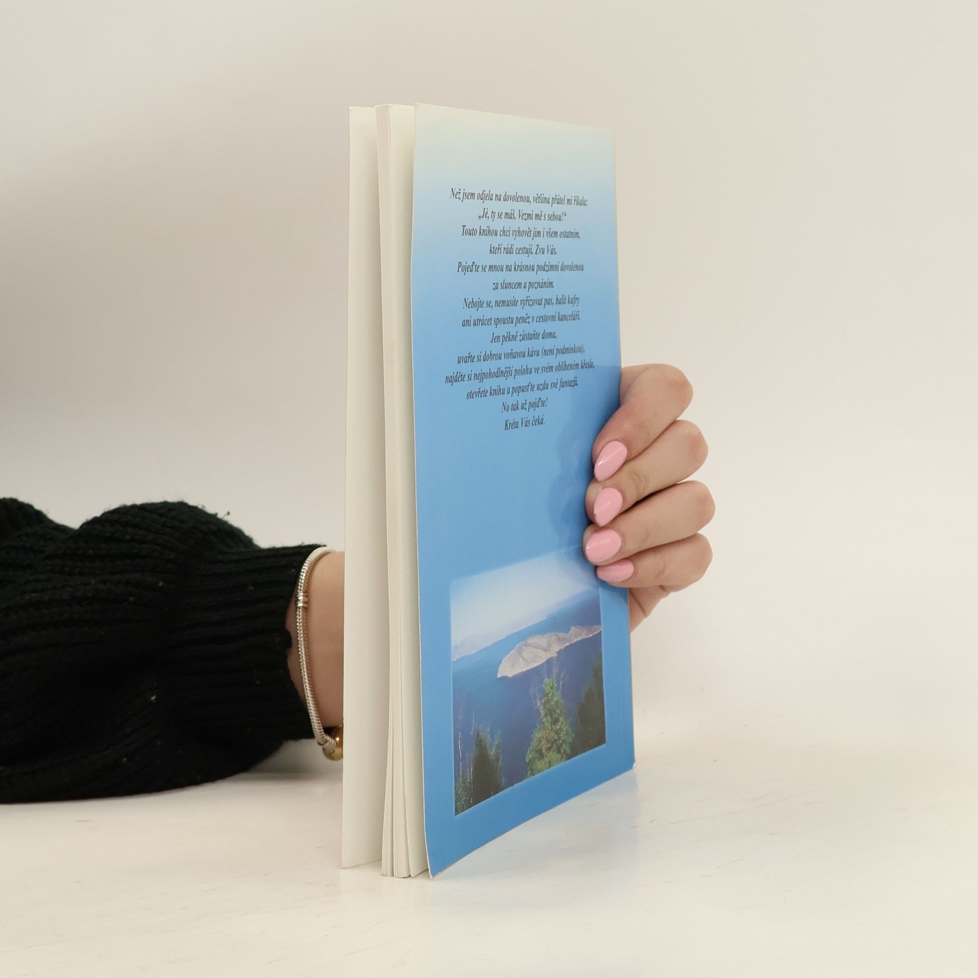 Autorka popisuje den po dni devítidenní zájezd od příprav a ubytování, přes výlety na Krétě s vyprávěním o navštívených místech až po návrat domů. Doplněno dokumentárními fotografiemi. Kniha vydána roku 1999.