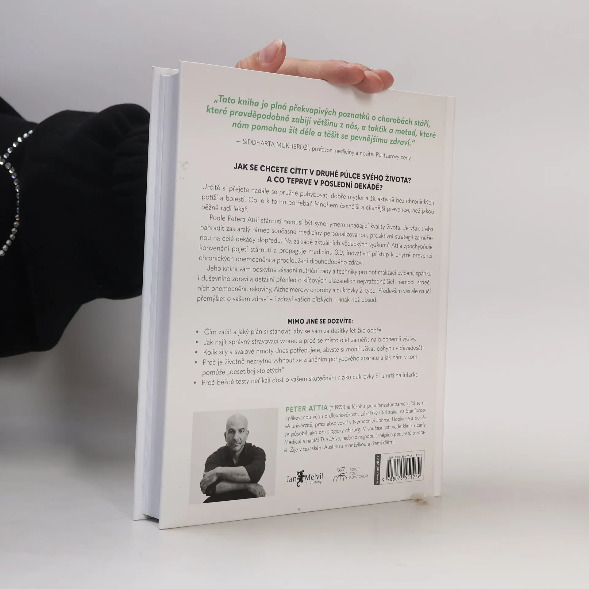 Určitě si přejete nadále se pružně pohybovat, dobře myslet a žít aktivně bez chronických potíží a bolestí. Co je k tomu třeba? Mnohem časnější a cílenější prevence, než jakou běžně radí lékař. Peter Attia věří, že zastaralý rámec současné medicíny musíme nahradit personalizovanou, proaktivní strategií zaměřenou na celé dekády dopředu. Na základě aktuálních vědeckých výzkumů Attia zpochybňuje konvenční pojetí stárnutí a propaguje medicínu 3.0, inovativní přístup k chytré prevenci chronických onemocnění a prodloužení dlouhodobého zdraví. Jeho kniha vám poskytne zásadní nutriční rady a techniky pro optimalizaci cvičení, spánku i duševního zdraví a detailní přehled o klíčových ukazatelích nejvražednějších nemocí: srdečních chorob, rakoviny, Alzheimerovy choroby a cukrovky 2. typu. Především vás ale naučí přemýšlet o vašem zdraví – i zdraví vašich blízkých – jinak než dosud.