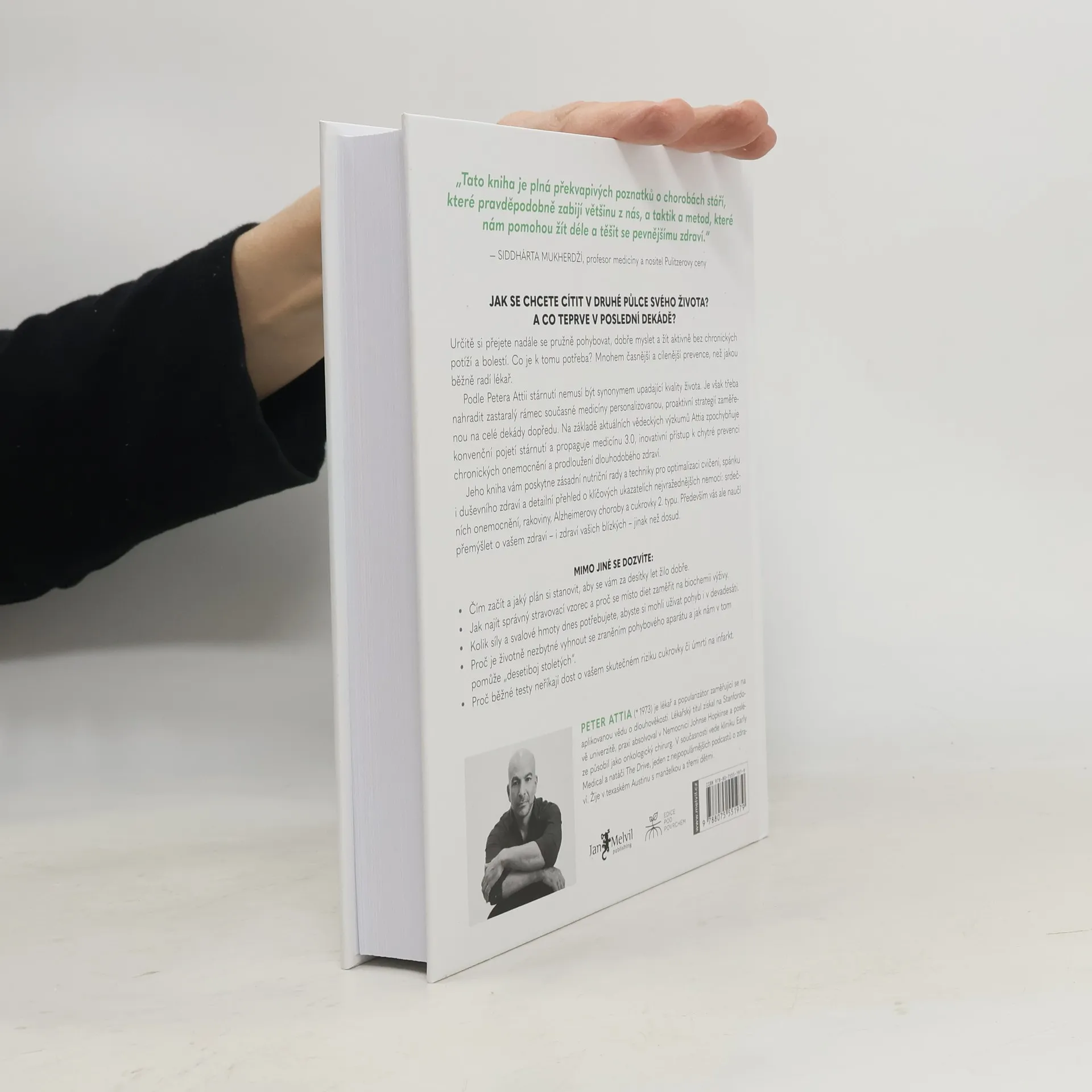 Určitě si přejete nadále se pružně pohybovat, dobře myslet a žít aktivně bez chronických potíží a bolestí. Co je k tomu třeba? Mnohem časnější a cílenější prevence, než jakou běžně radí lékař. Peter Attia věří, že zastaralý rámec současné medicíny musíme nahradit personalizovanou, proaktivní strategií zaměřenou na celé dekády dopředu. Na základě aktuálních vědeckých výzkumů Attia zpochybňuje konvenční pojetí stárnutí a propaguje medicínu 3.0, inovativní přístup k chytré prevenci chronických onemocnění a prodloužení dlouhodobého zdraví. Jeho kniha vám poskytne zásadní nutriční rady a techniky pro optimalizaci cvičení, spánku i duševního zdraví a detailní přehled o klíčových ukazatelích nejvražednějších nemocí: srdečních chorob, rakoviny, Alzheimerovy choroby a cukrovky 2. typu. Především vás ale naučí přemýšlet o vašem zdraví – i zdraví vašich blízkých – jinak než dosud.