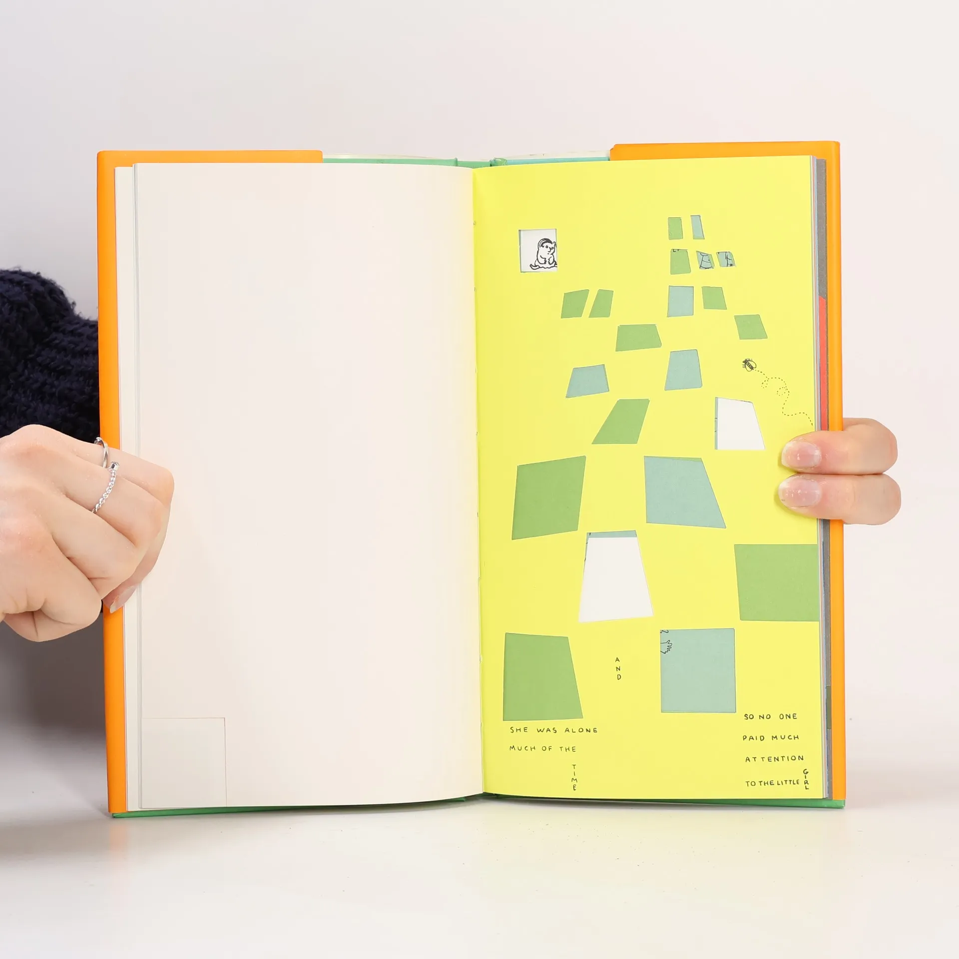 This charming book will delight—and touch—all readers. Its sweet, heartbreaking story is told on pages of vibrant colors and uneven widths, pages with cut-outs and strip-ins, pages with peepholes—pages of all shapes and colorful varieties. This story is a simple one about a little girl. She has parents, naturally, but they went away when she was nine. And as she has no relatives to care for her, she is taken in by an orphanage. Lonely and a bit unusual, she stares at people with her big eyes. She often does things that aren't very nice, and people aren't very nice to her. In fact, they want to send her away. Until, one day... Part story, part visual play, Love will surprise and enchant all who turn its pages.