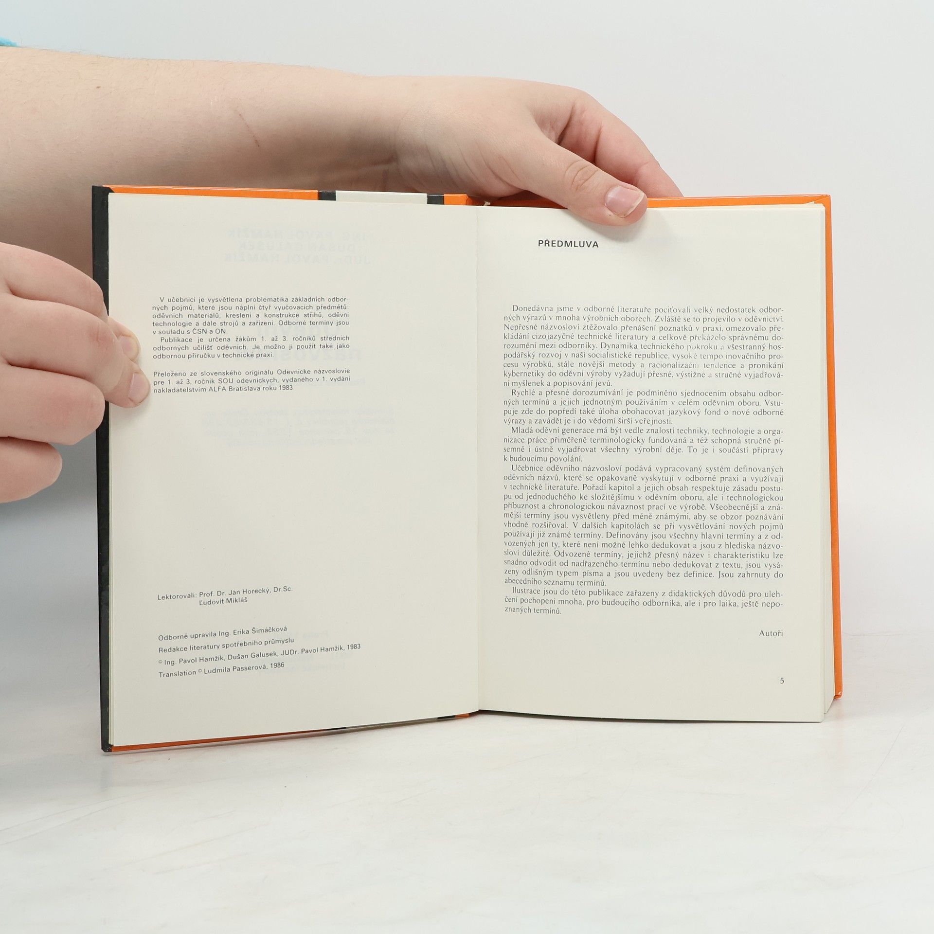 Vysvětluje problematiku základních odborných pojmů, které souvisí s oděvními materiály, kreslením, konstrukcí střihů, oděvní technologií a zařízeními v oděvnictví. Kniha je vhodná jako odborná příručka v technické praxi.